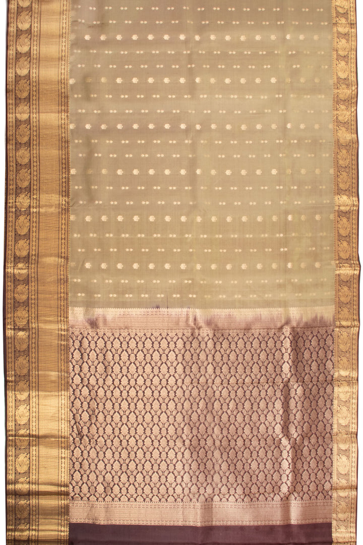 Indulge in the luxury of our Brown Pure Silk Kanjivaram Saree! Made with high-quality pure silk, this saree exudes elegance and adds a touch of tradition to any occasion. The rich Brown color and intricate design make it a statement piece that will surely turn heads. Elevate your style and embrace the beauty of our Kanjivaram saree.