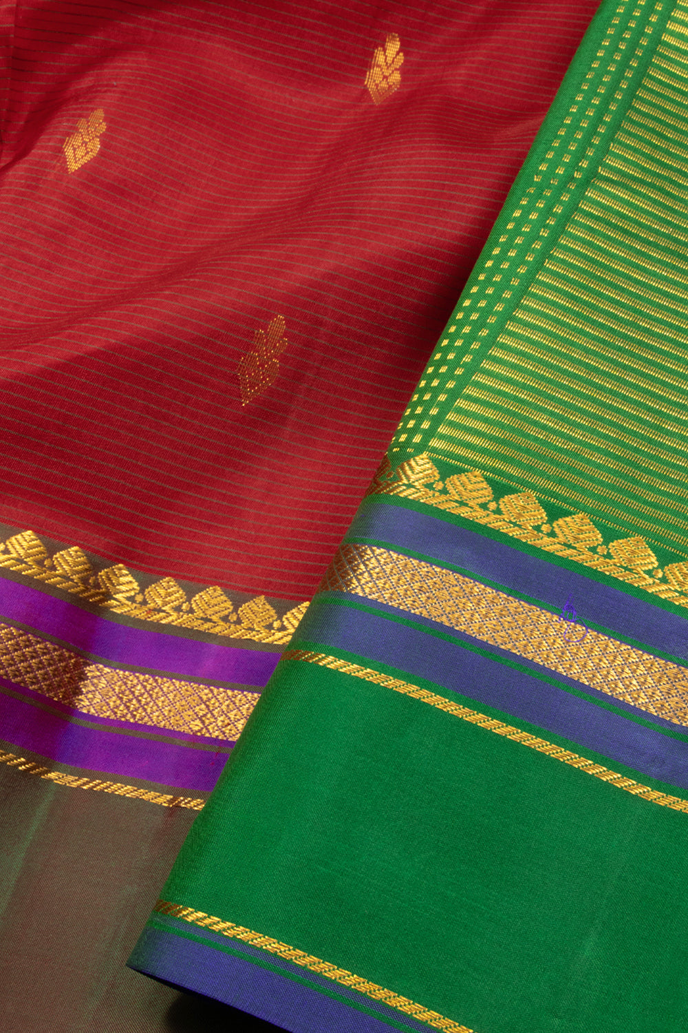 Make a captivating impression with the Wine Red Kanjivaram Silk Saree. Crafted from premium silk, this saree showcases a rich wine red shade that radiates warmth and sophistication. Its luxurious texture and elegant drape make ...