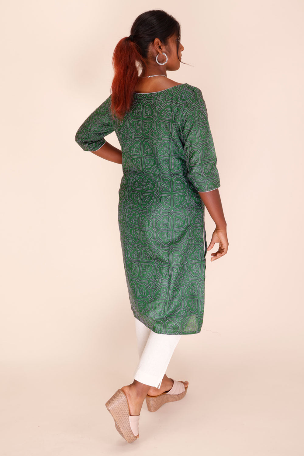 Green Kantha Embroidered Tussar Silk Kurta 10064091  Green Kantha Embroidered Tussar Silk Kurta 10064091