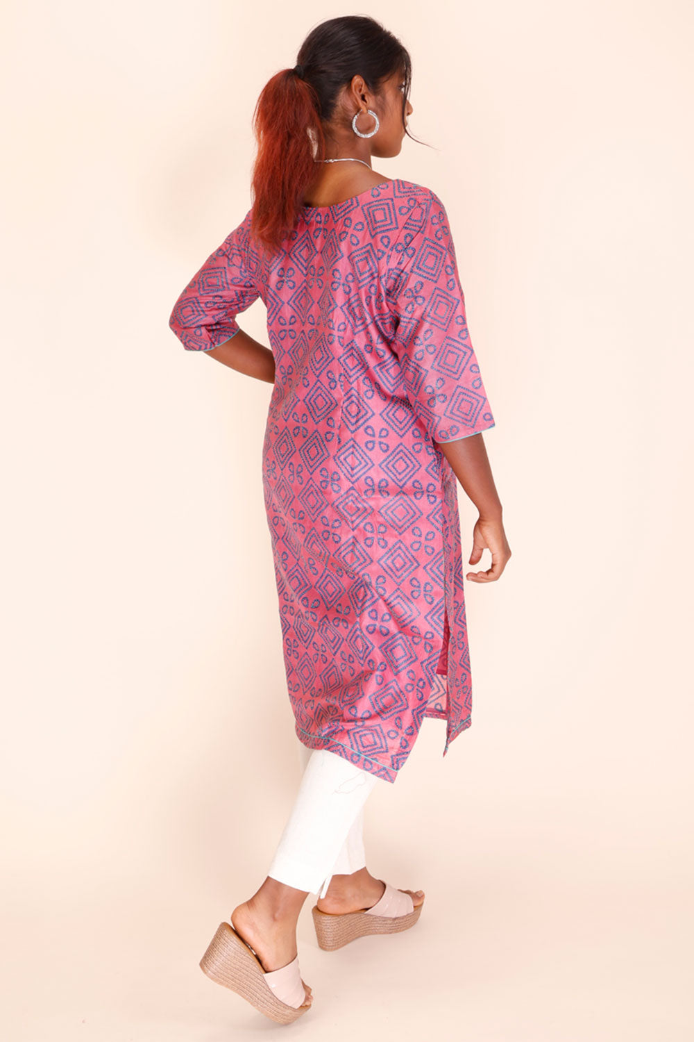 Pink Kantha Embroidered Tussar Silk Kurta 10064088 Pink Kantha Embroidered Tussar Silk Kurta 10064088
