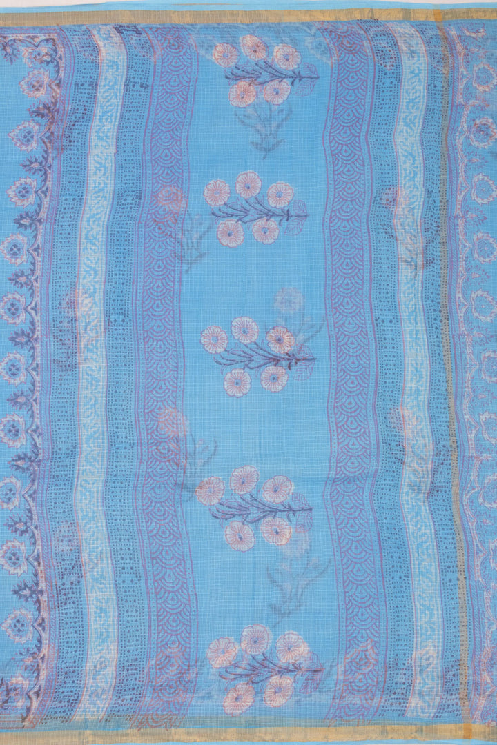 Blue Hand Block Print Kota Cotton Saree 10074167