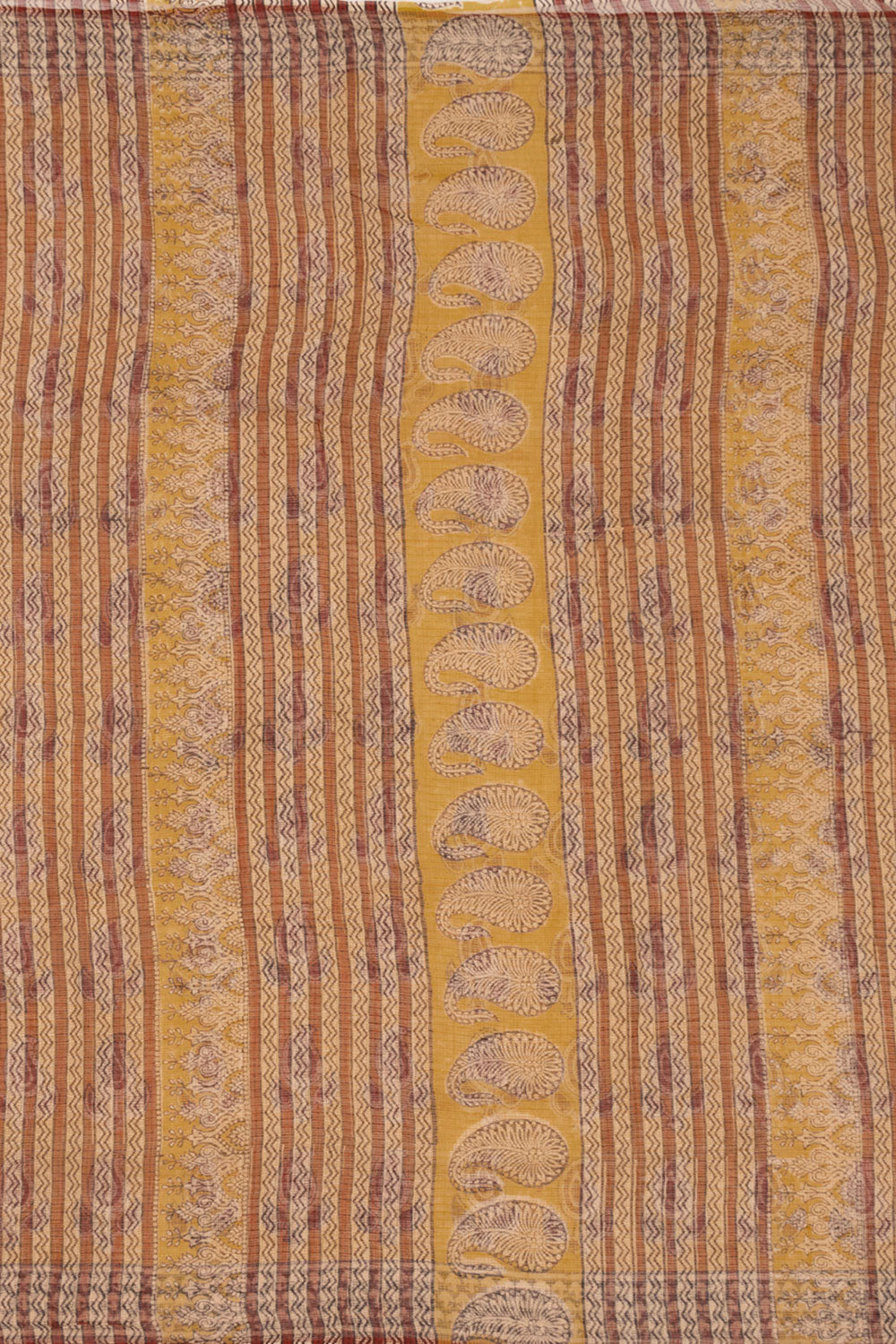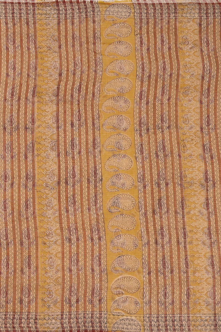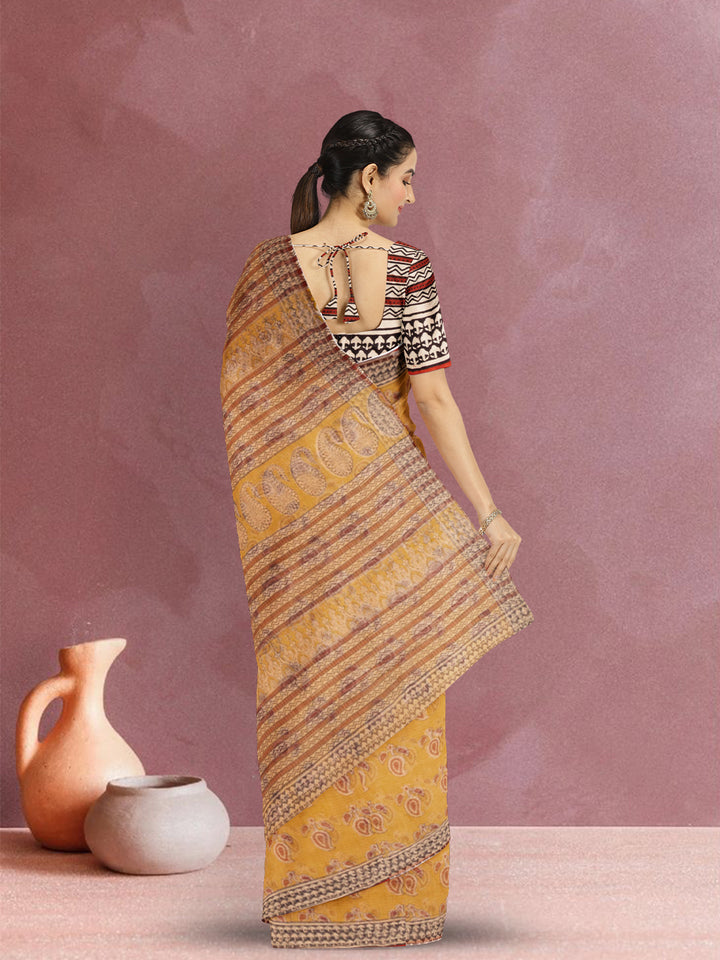 Yellow Hand Block Print Kota Cotton Saree 10074162