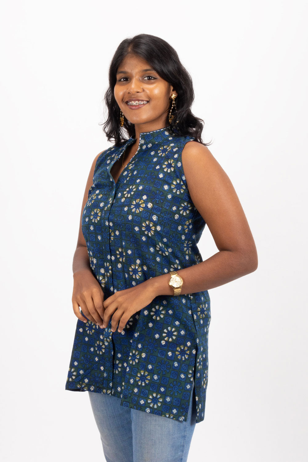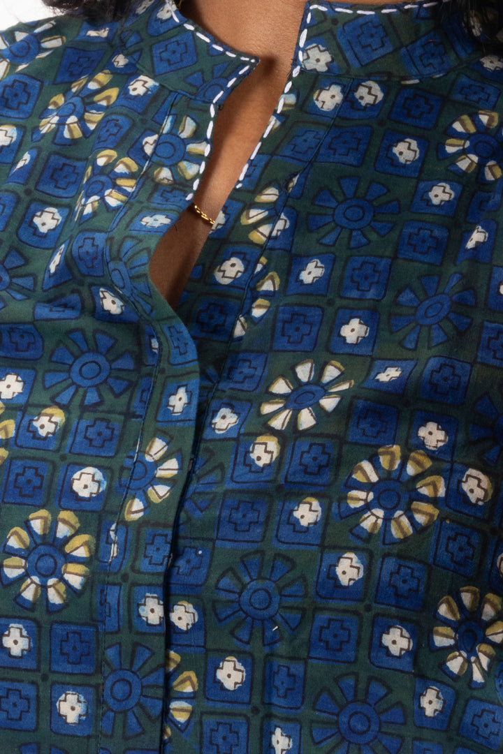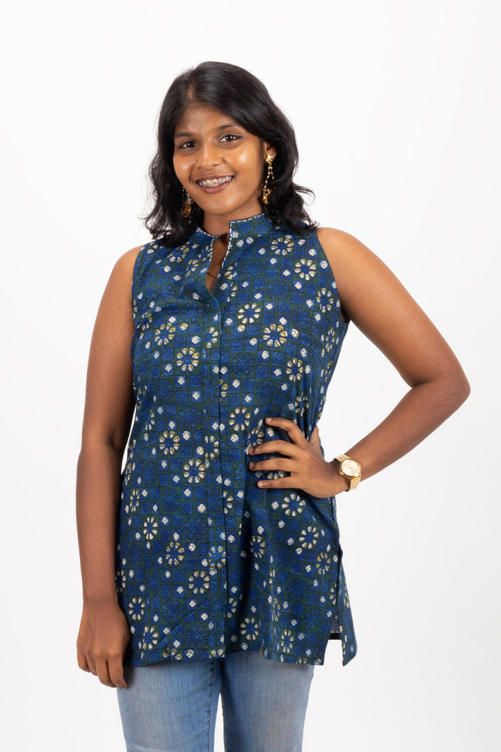 Elevate your casual wardrobe with the Blue Jahota Hand Block Cotton Kurti. Crafted from breathable cotton and featuring intricate hand block prints, this kurti offers both comfort and style. Perfectly paired with jeans or beige pants, it creates a versatile look that transitions effortlessly from day to night. Embrace timeless elegance and make a statement wherever you go.
