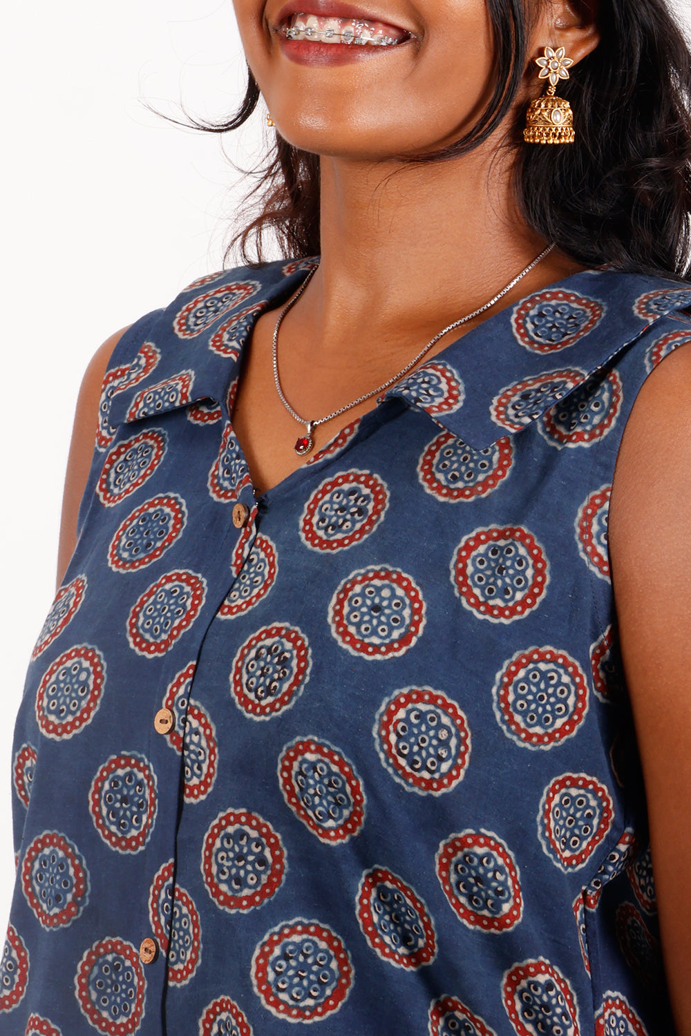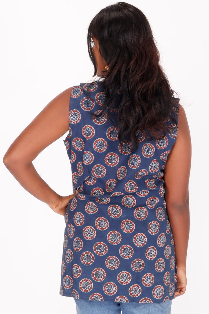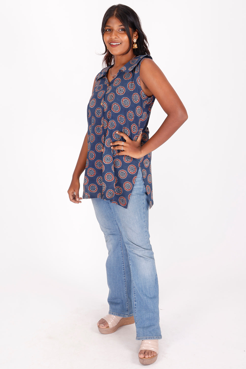 Experience the exquisite art of ajrakh prints with our Blue Ajrakh Printed Cotton Kurti! Made with 100% pure cotton, this kurti features authentic ajrakh prints that are sure to make you stand out. Perfect for any occasion, this kurti offers both style and comfort. Don't miss out on this unique piece!