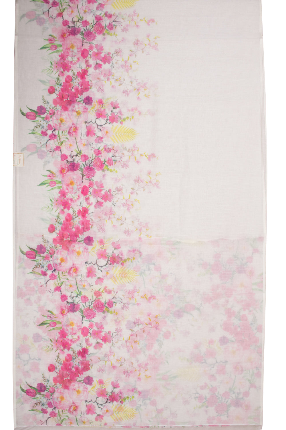 White Floral Printed Linen Saree 10074020
