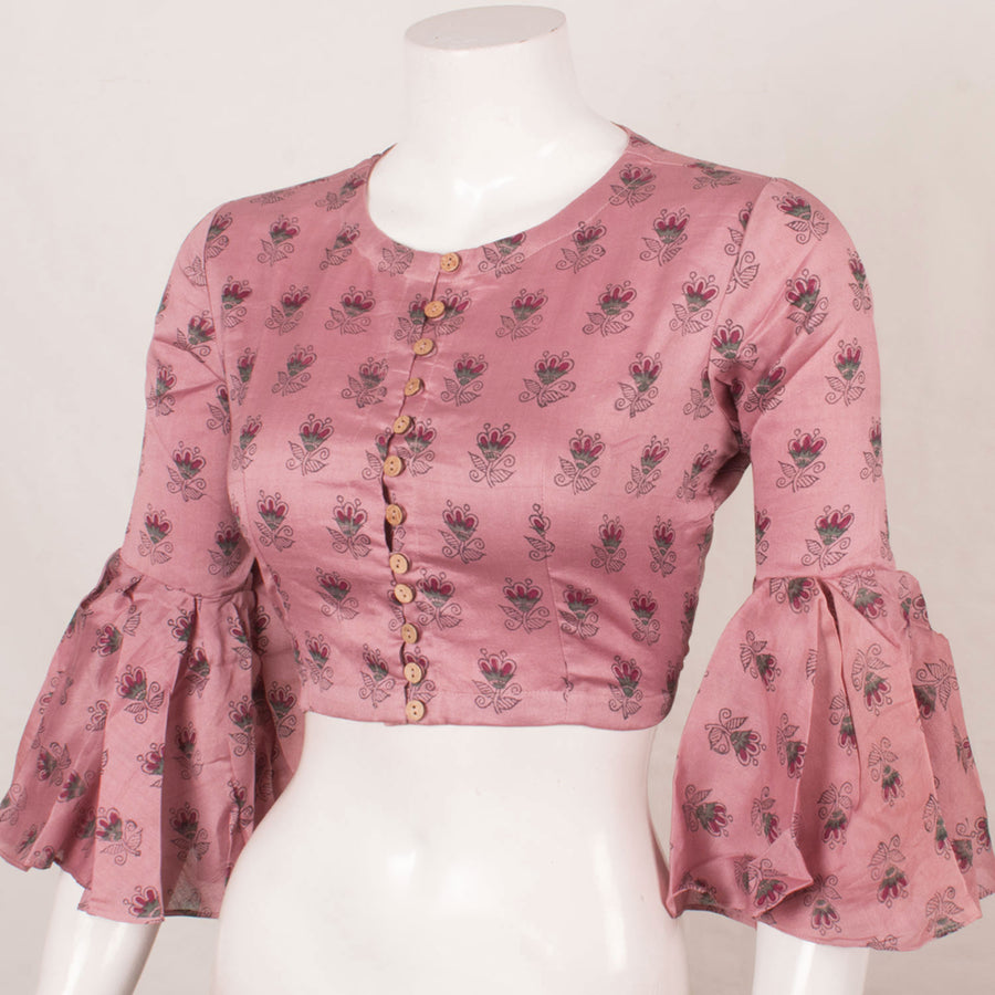 Madhubani Printed Silk Cotton Blouse with Floral Motifs and Bell Sleeves 10057644