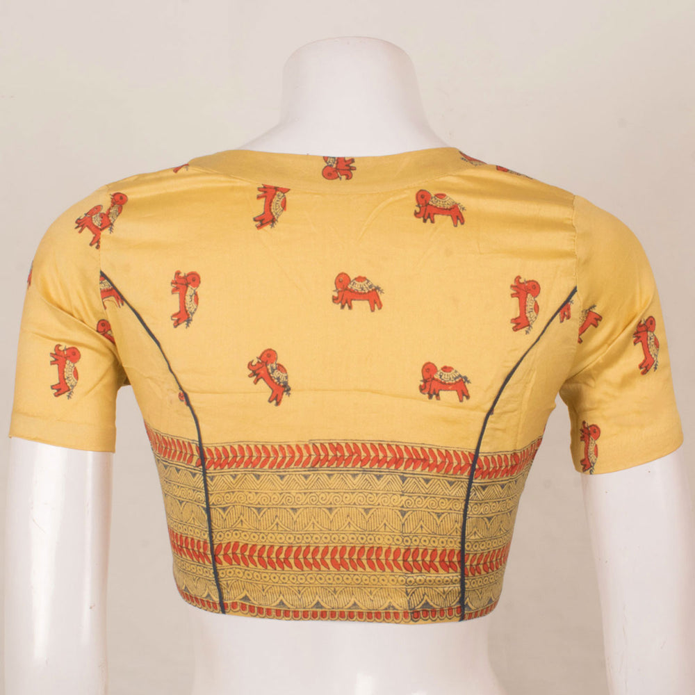 Madhubani Printed Silk Cotton Blouse with Elephant Motifs 10057636