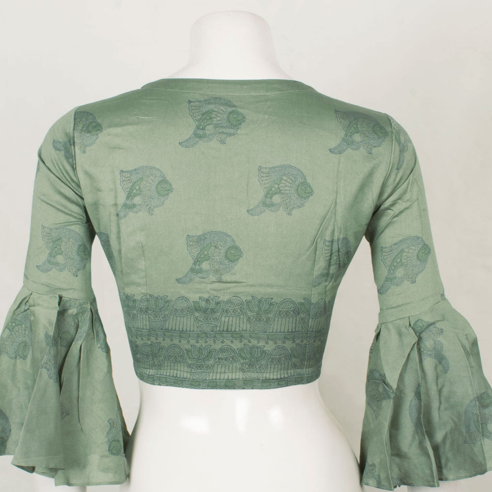 Madhubani Printed Silk Cotton Blouse with Fish Motifs and Bell Sleeves 10057647