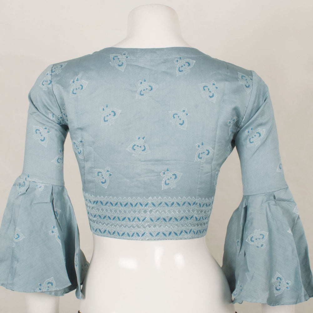Madhubani Printed Silk Cotton Blouse with Bird Motifs and Bell Sleeves 10057649
