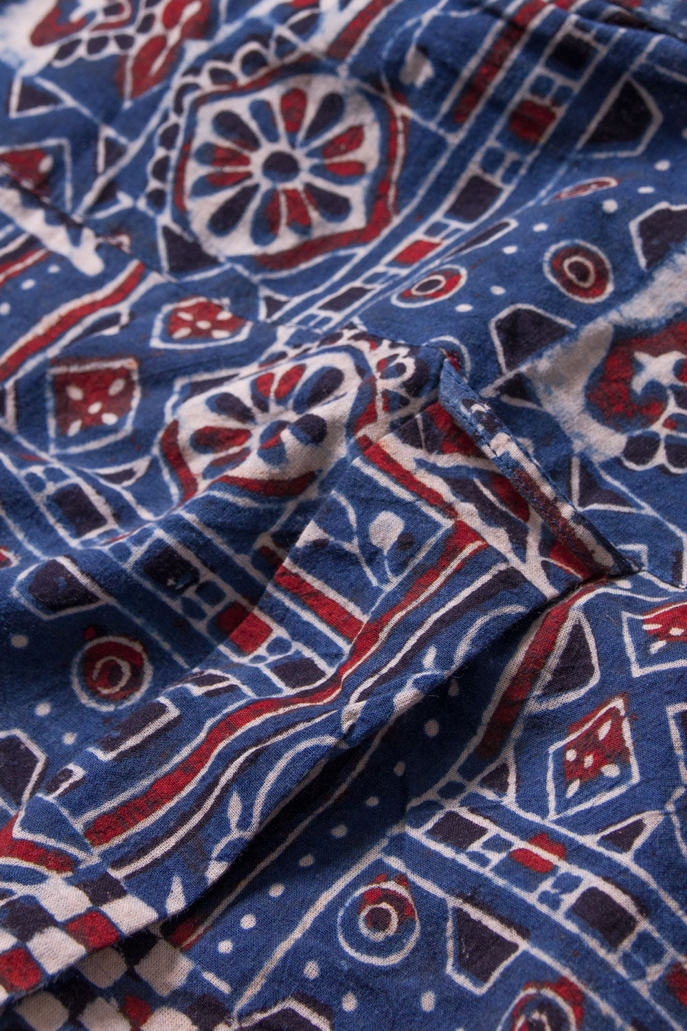 Ajrakh Printing is one of India’s oldest and most intricate block-printing traditions, flourishing in the Kutch region of Gujarat. Evidence of Ajrakh-like patterns has even been found in the ancient ruins of Mohenjo Daro and Harappa. The process is painstaking and time-intensive, with each colour printed separately, followed by cycles of drying, washing, and reprinting. This meticulous technique not only creates Ajrakh’s signature geometric and floral patterns but also makes the fabric exceptionally soft and long-lasting. Crafted entirely with natural dyes, Ajrakh prints have a rich, earthy aesthetic and vibrant depth of colour. These timeless designs are printed on fabrics like cotton, silk-cotton, modal, gajji, and more, celebrating centuries of skilled artistry.