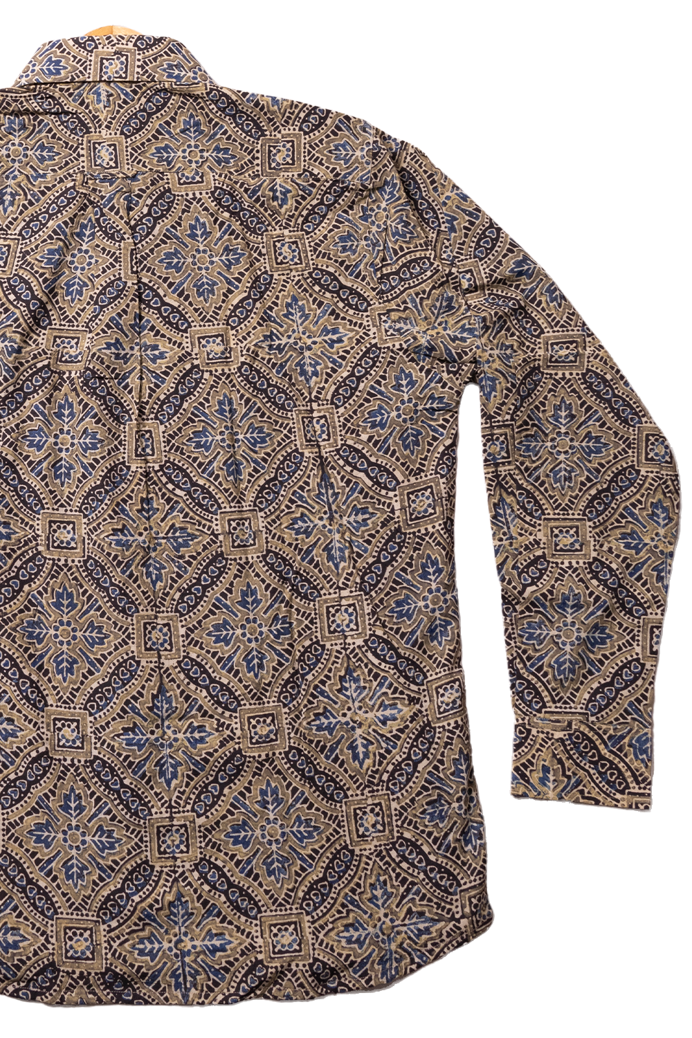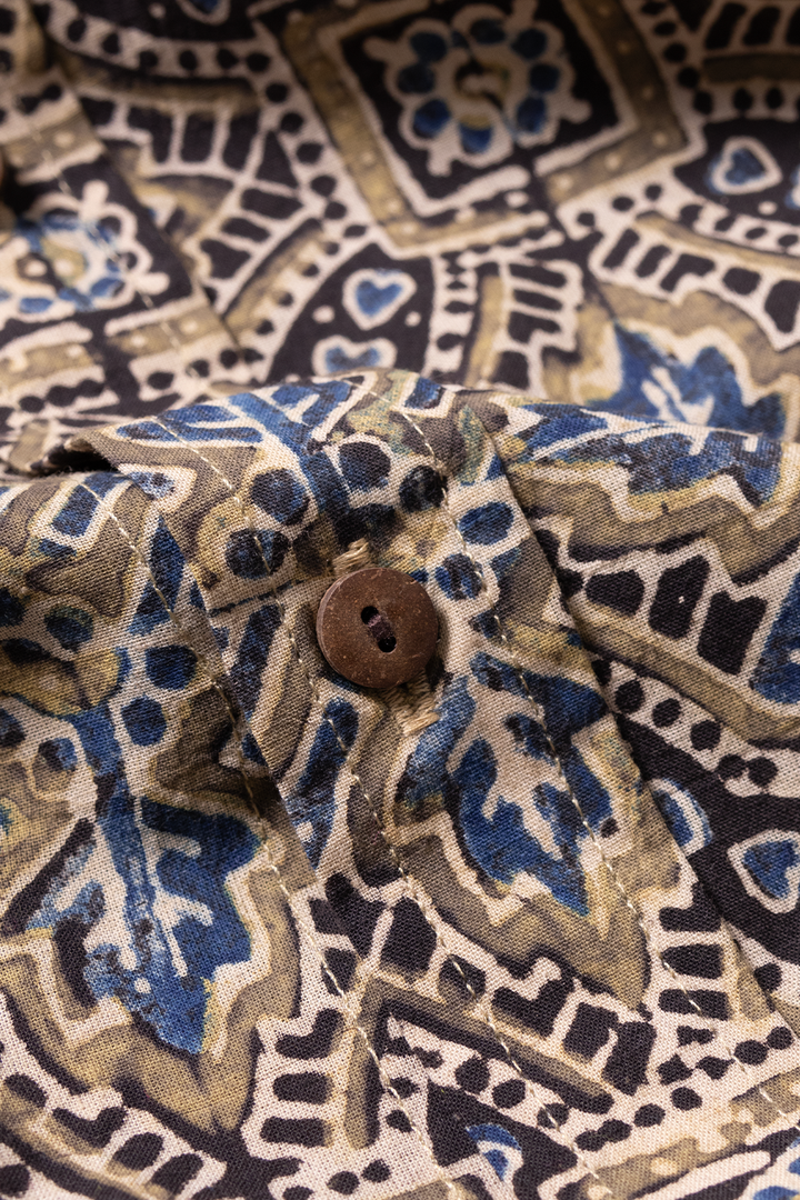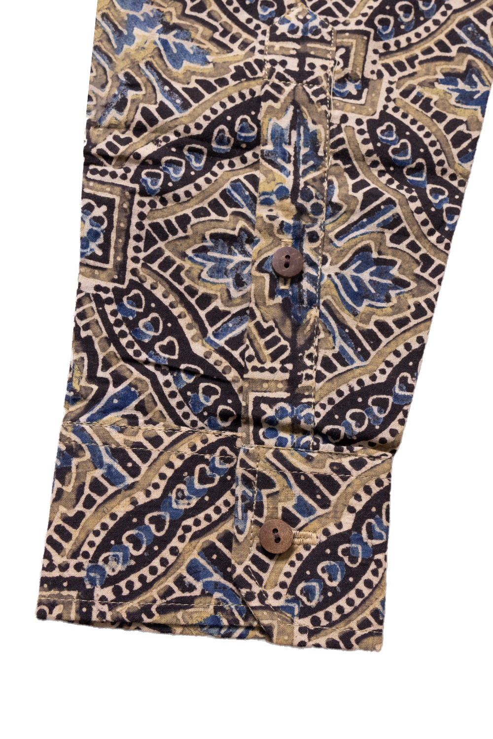Ajrakh Printing is one of India’s oldest and most intricate block-printing traditions, flourishing in the Kutch region of Gujarat. Evidence of Ajrakh-like patterns has even been found in the ancient ruins of Mohenjo Daro and Harappa. The process is painstaking and time-intensive, with each colour printed separately, followed by cycles of drying, washing, and reprinting. This meticulous technique not only creates Ajrakh’s signature geometric and floral patterns but also makes the fabric exceptionally soft and long-lasting. Crafted entirely with natural dyes, Ajrakh prints have a rich, earthy aesthetic and vibrant depth of colour. These timeless designs are printed on fabrics like cotton, silk-cotton, modal, gajji, and more, celebrating centuries of skilled artistry.