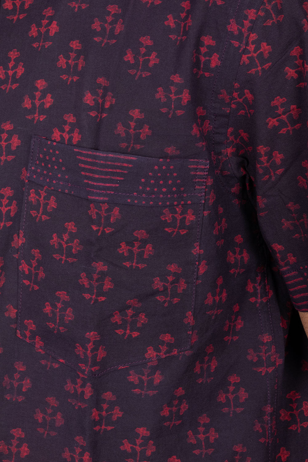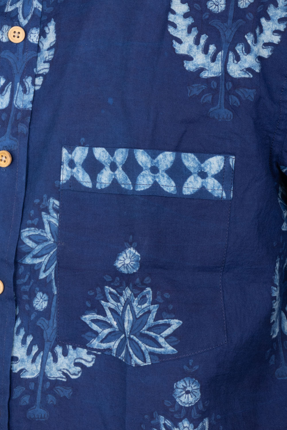 Indigo Handblock Print Pre-Washed Pure Cotton Shirt 10075459 Indigo Handblock Print Pre-Washed Pure Cotton Shirt 10075459