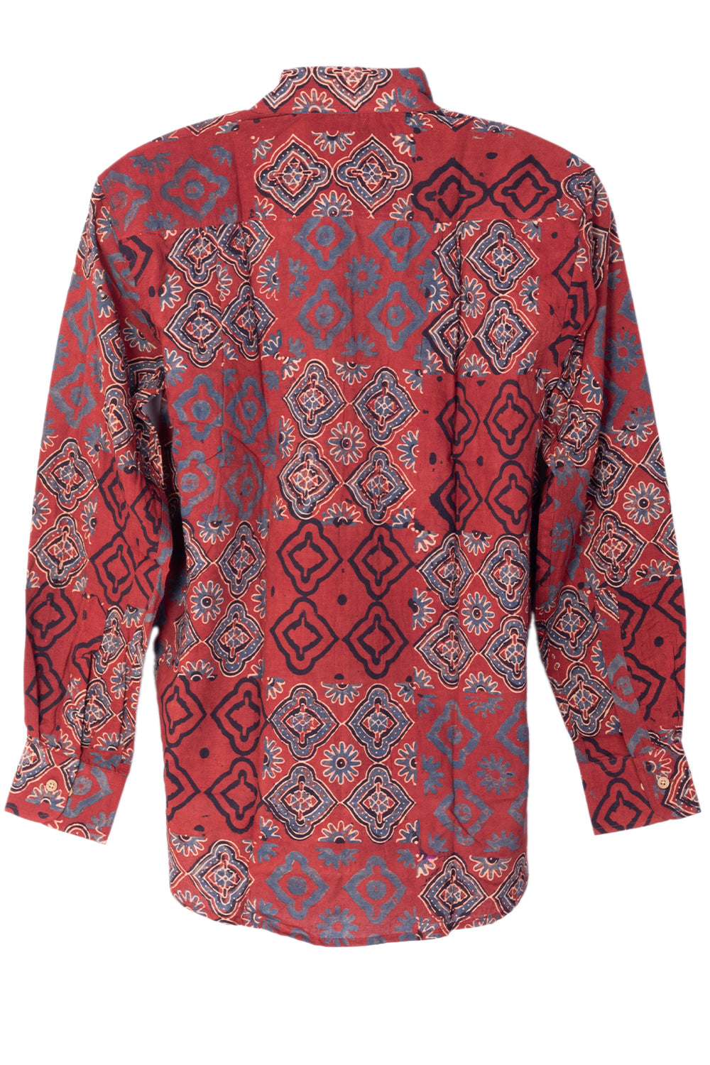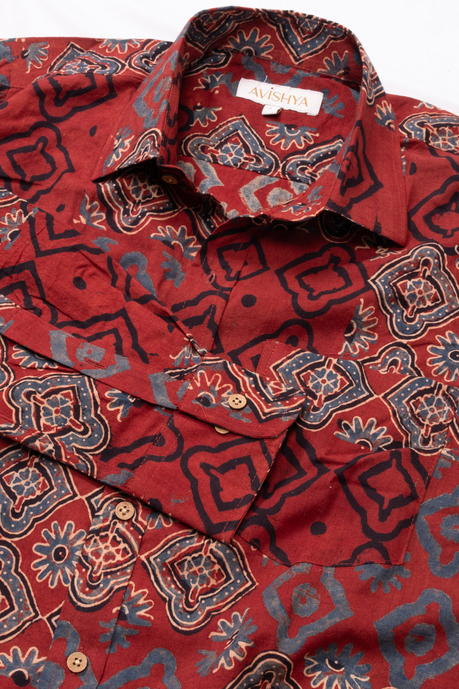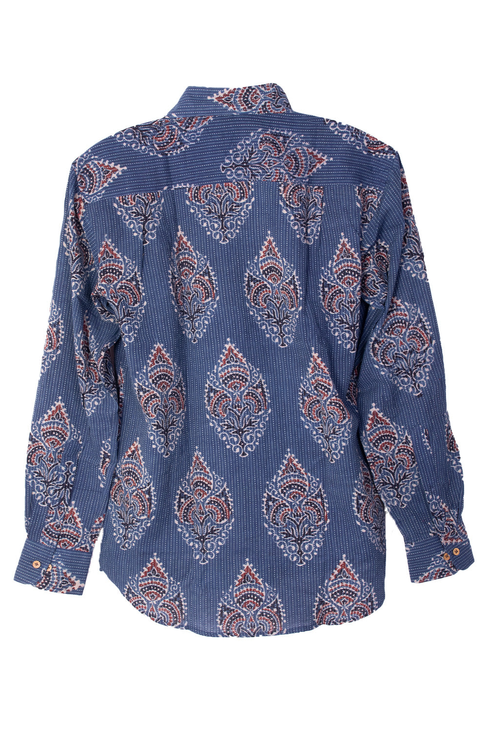 This Indigo Handblock Print shirt, made from pre-washed pure cotton, features wooden buttons and convenient pockets. Its versatile design pairs perfectly with jeans, khaki pants, or shorts, making it an essential addition to yo...