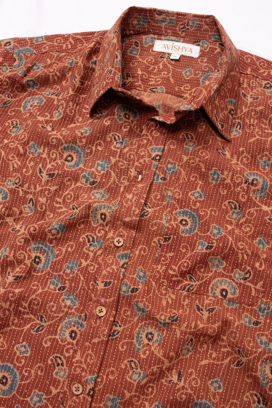 Elevate your casual wardrobe with this Brown Jahota Printed Modal Silk Men's Shirt. It features stylish wooden buttons and convenient pockets for a functional yet fashionable look. Perfectly paired with jeans, khaki pants, this...