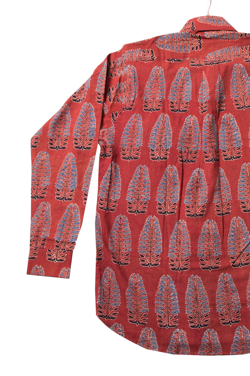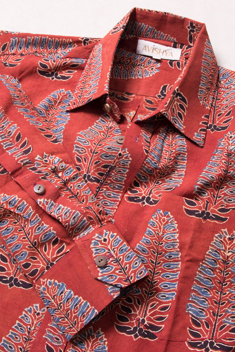 Elevate your casual wardrobe with this Red Jahota Printed Cotton Men's Shirt. Crafted from breathable cotton, it features stylish wooden buttons and convenient pockets for a functional yet fashionable look. Perfectly paired wit...