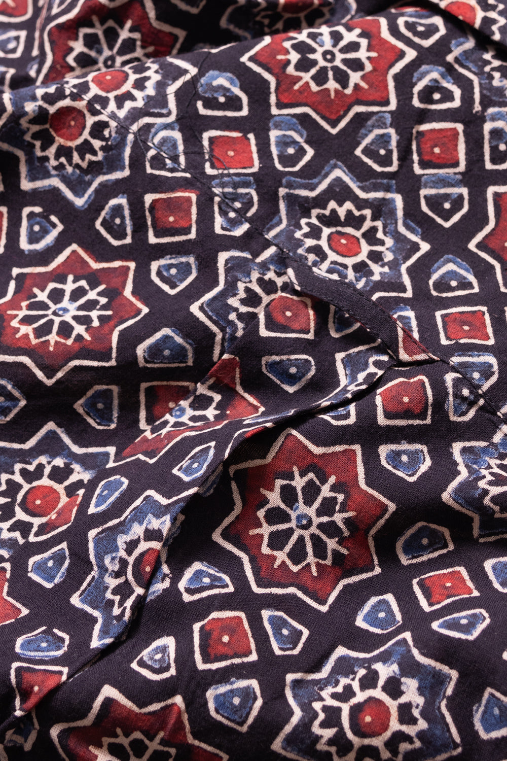 This Indigo Handblock Print shirt, made from pre-washed pure cotton, features wooden buttons and convenient pockets. Its versatile design pairs perfectly with jeans, khaki pants, or shorts, making it an essential addition to yo...