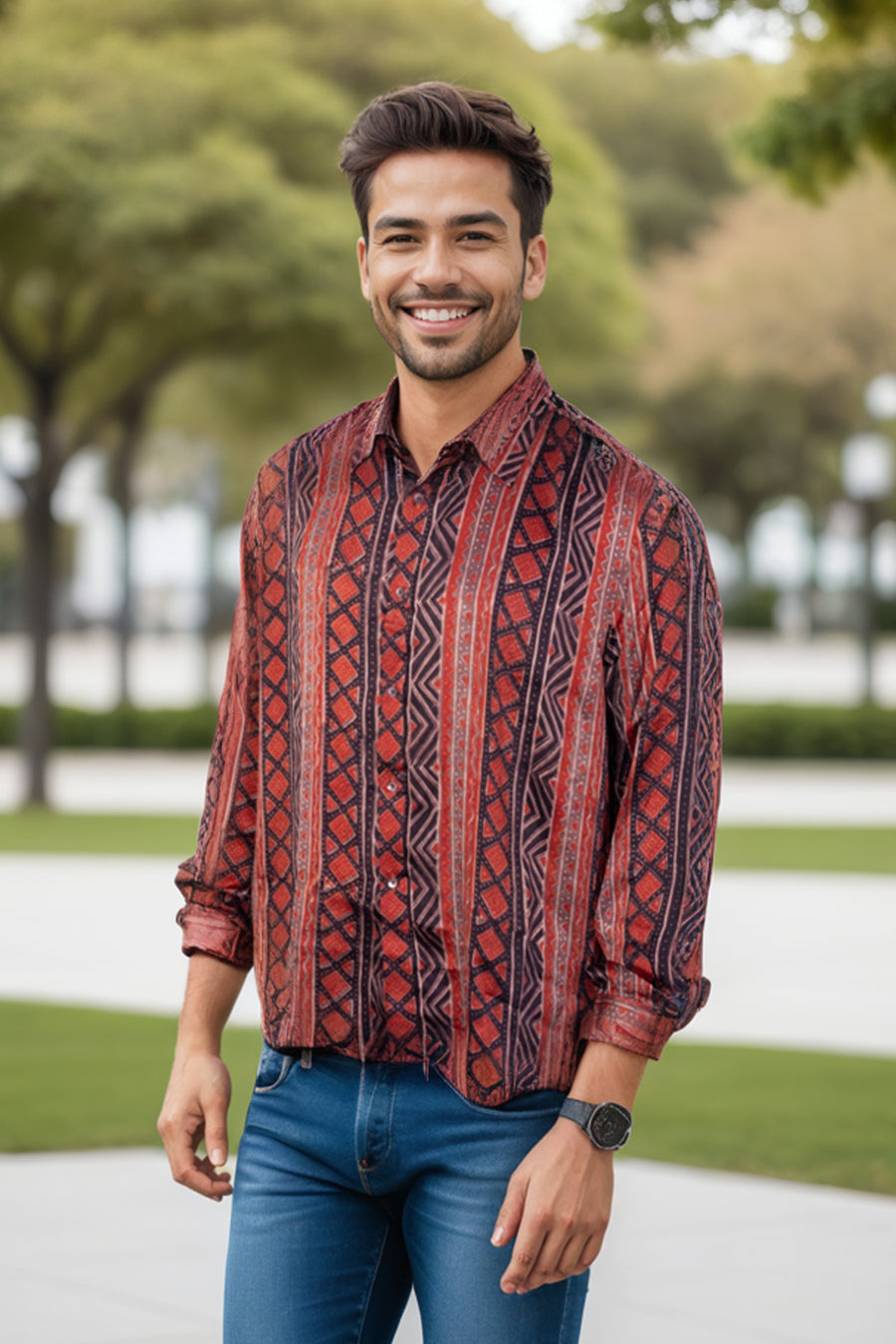 Avishya presents a sophisticated collection of Vanaspathi printed full sleeve shirts, crafted from luxurious modal silk. Designed for those who appreciate fine craftsmanship and unique prints, these shirts are the perfect choice for party wear and special occasions.