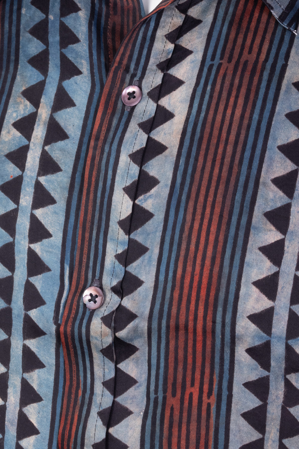 Elevate your casual wardrobe with this Blue Jahota Printed Modal Silk Men's Shirt. It features stylish wooden buttons and convenient pockets for a functional yet fashionable look. Perfectly paired with jeans, khaki pants, this ...