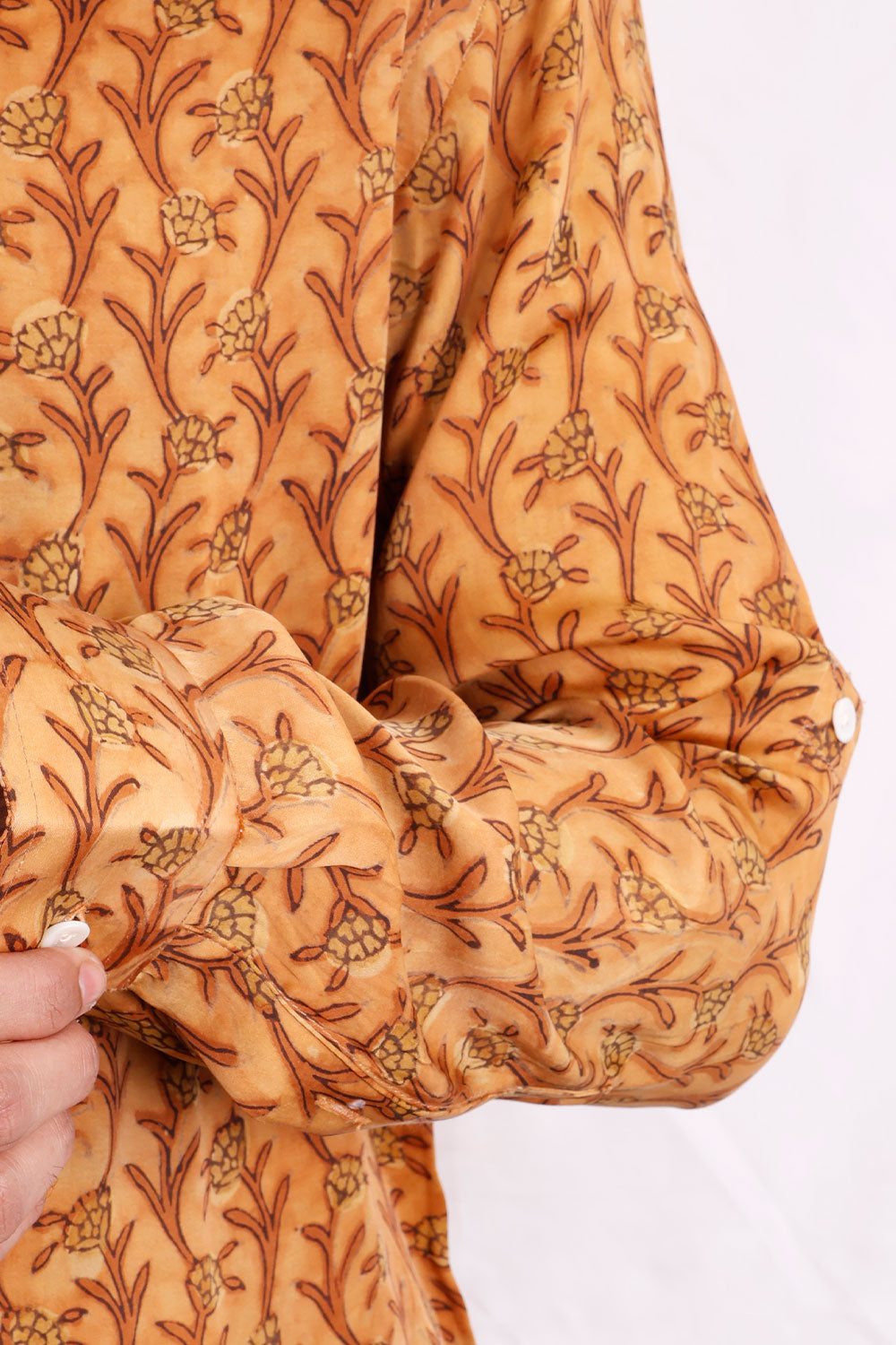 Elevate your casual wardrobe with this Brown Jahota Printed Modal Silk Men's Shirt. It features stylish wooden buttons and convenient pockets for a functional yet fashionable look. Perfectly paired with jeans, khaki pants, this...