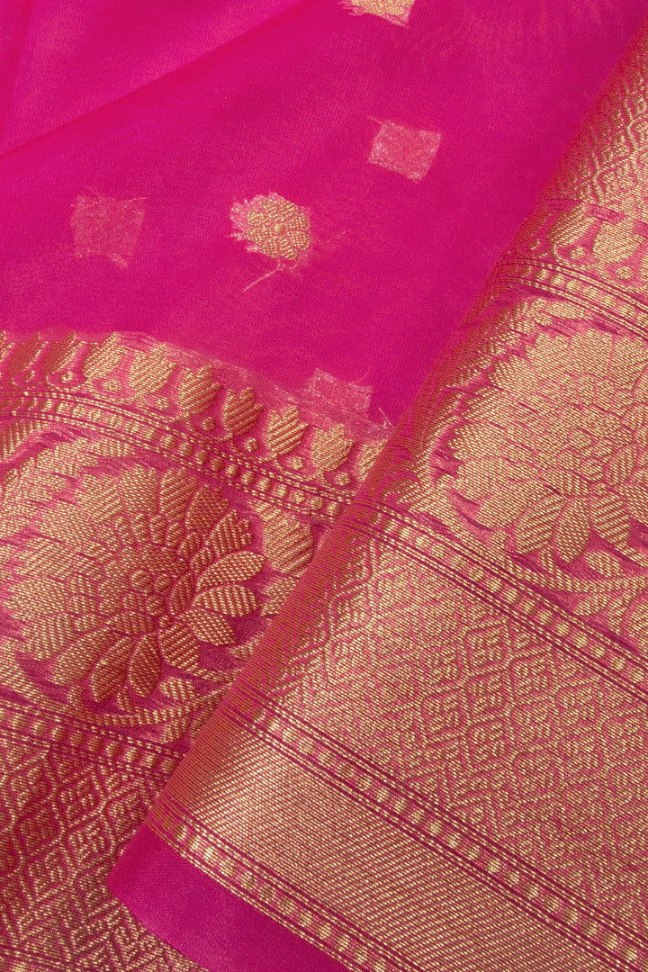 Banarasi Organza Sarees bring together the grandeur of Banarasi weaving with the delicate charm of organza. Light, airy, and sheer, these sarees carry the signature Banarasi motifs—florals, vines, and intricate buttas—woven with zari that shimmers against the gossamer fabric. The result is a saree that looks regal yet feels feather-light, perfect for those who love Banarasi artistry but prefer an easy, graceful drape. Elegant and versatile, Banarasi Organza Sarees are ideal for weddings, parties, and festive occasions where you want timeless tradition with modern ease.