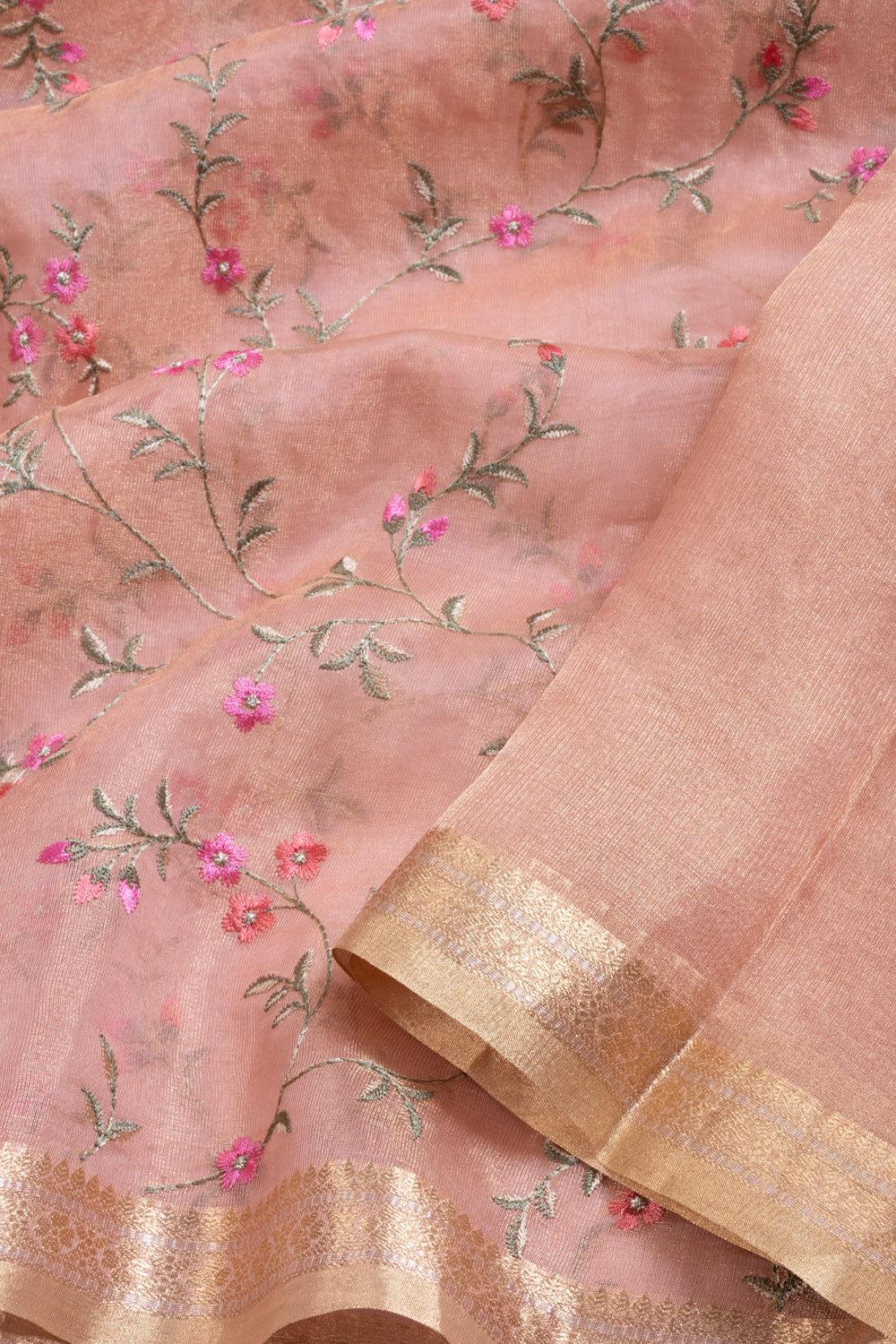 Elevate your traditional wardrobe with our Pink Hand Embroidered Pure Silk Organza Saree. This exquisite saree showcases intricate hand embroidery on pure silk organza, creating a luxurious and delicate look. Perfect for specia...