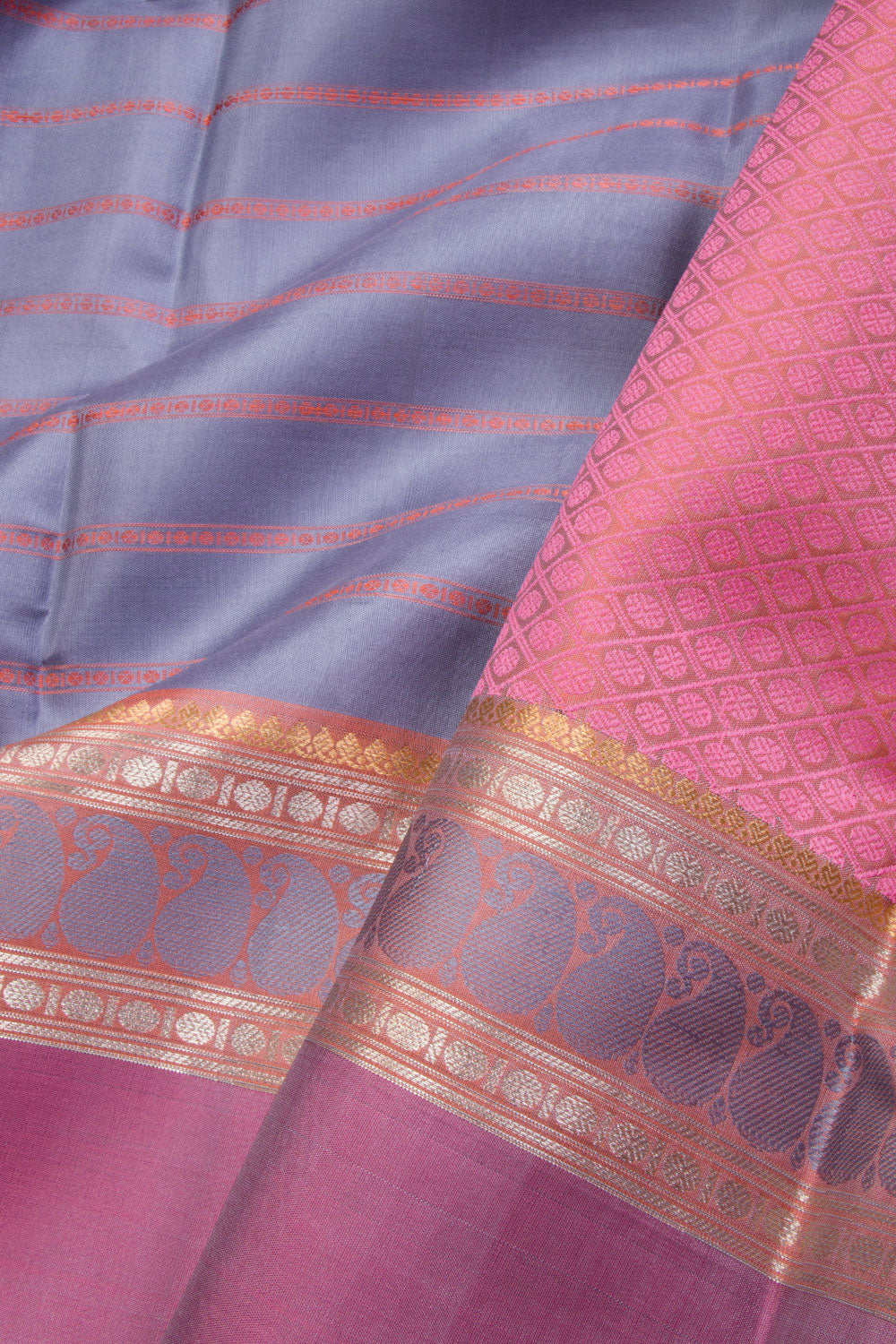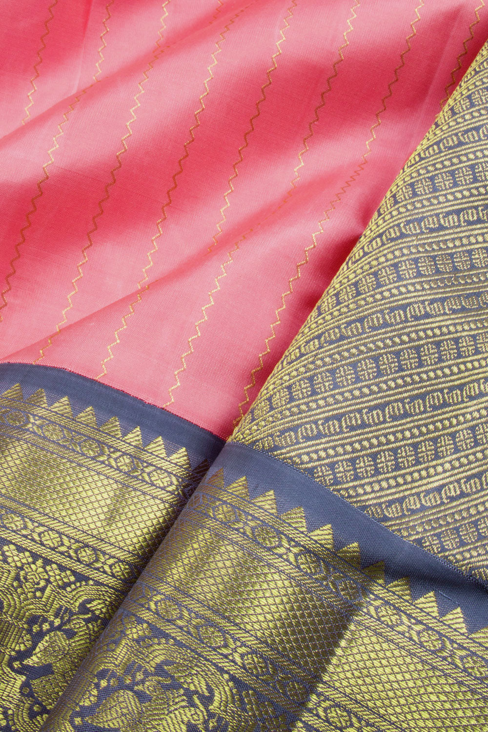 Add a splash of elegance to your wardrobe with this playful Pink Kanjivaram Pure Silk Saree. Crafted from pure silk and adorned with shimmering pure zari work, it promises a rich, luxurious feel that twirls beautifully with eve...