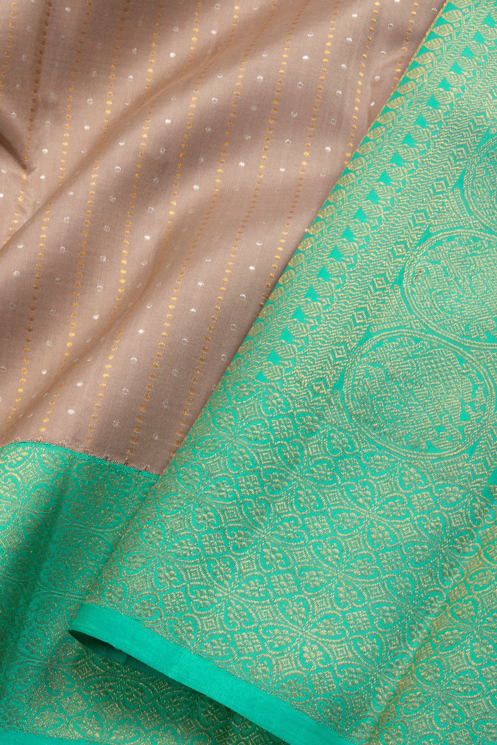The Pastel Beige Korvai Bridal Kanjivaram Pure Zari Silk Saree embodies subtle elegance and timeless tradition. Woven from pure zari silk using the Korvai technique, this saree offers a smooth texture and a gentle sheen. Its so...