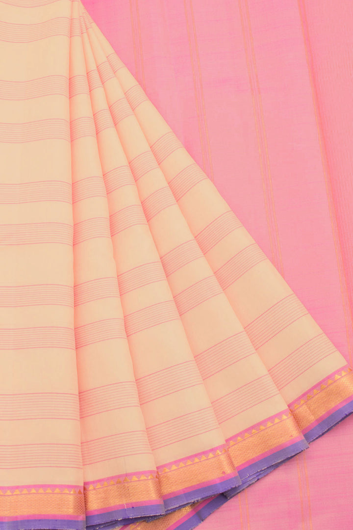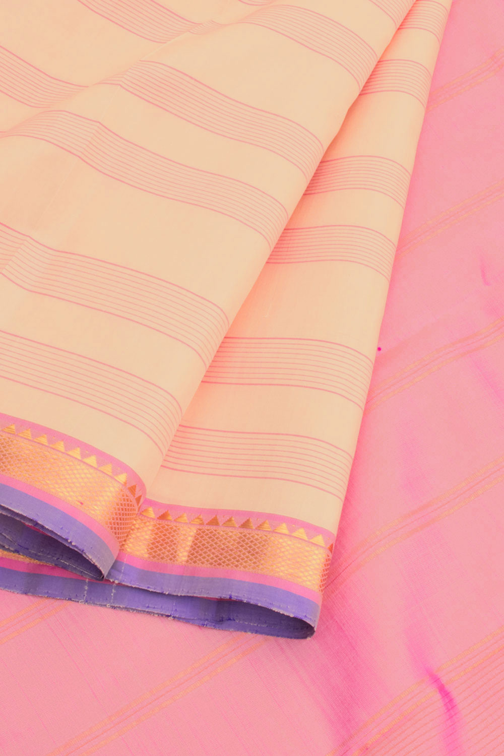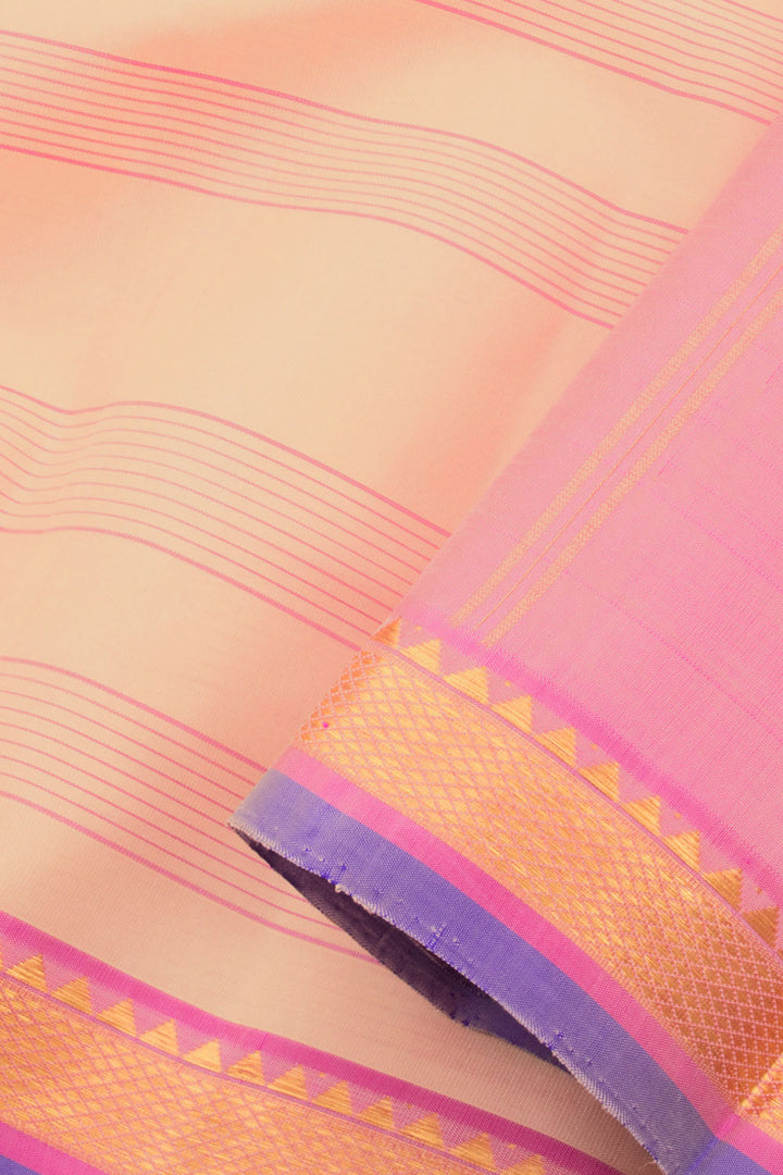 Pastel Cream Handloom Pure Zari Kanjivaram Silk Saree 10060061