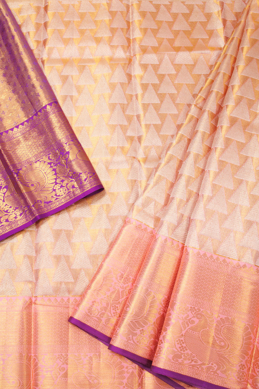 Peach Kanjivaram Pattu Pavadai Material-Avishya Peach Kanjivaram Pattu Pavadai Material-Avishya