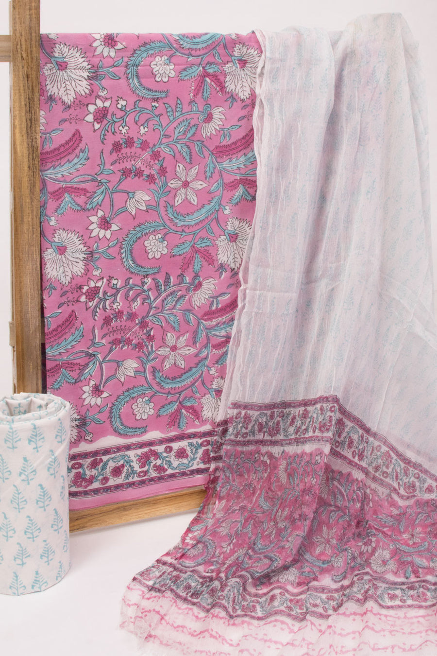 Pink 3-Piece Mulmul Cotton Salwar Suit Material With Kota Dupatta 10070105 Pink 3-Piece Mulmul Cotton Salwar Suit Material With Kota Dupatta 10070105