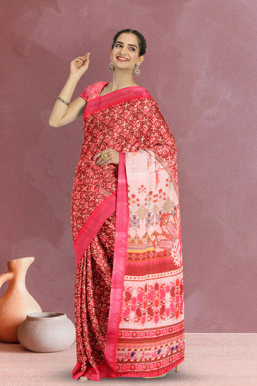 Get ready to elevate your style and grace with our Hot Pink Fancy Printed Linen Saree. The beautiful floral design on both the saree and blouse will make a lasting impression at any occasion, from extravagant weddings to casual...