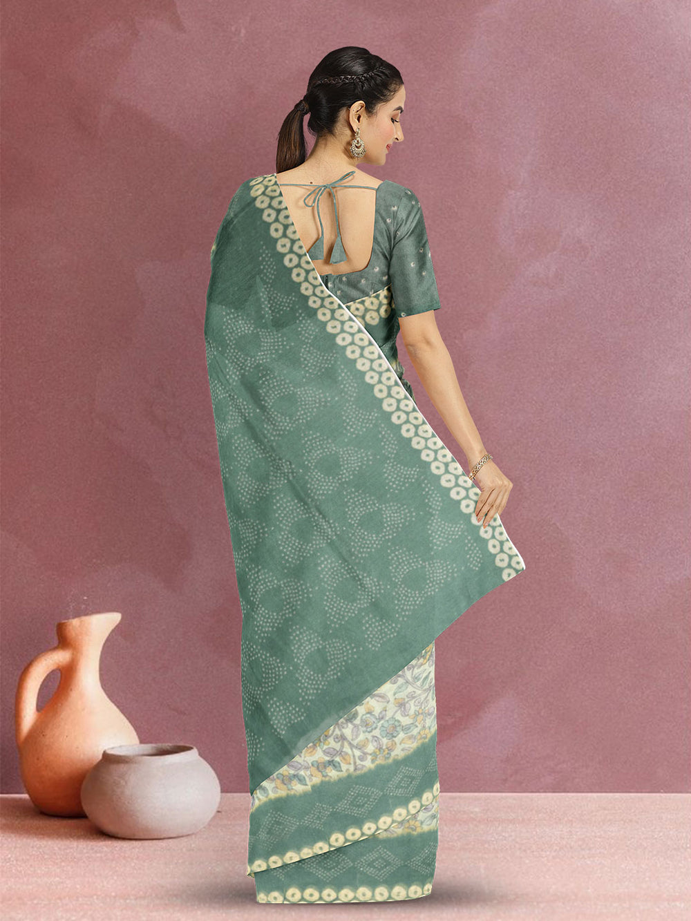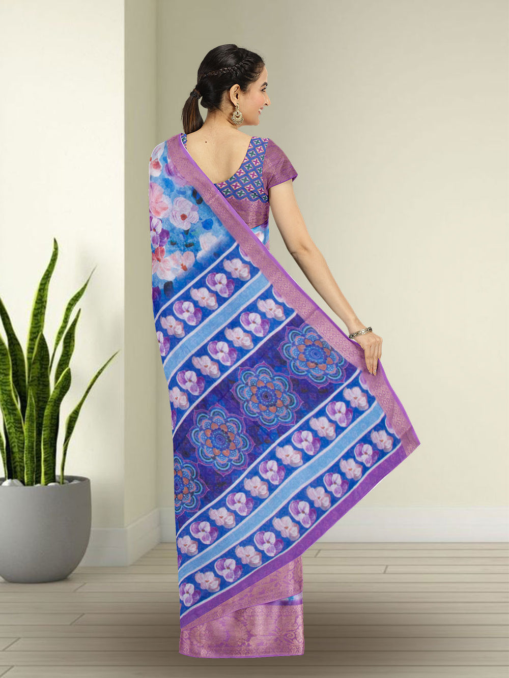 Get ready to elevate your style and grace with our Pacific Blue Fancy Printed Linen Saree. The beautiful floral design on both the saree and blouse will make a lasting impression at any occasion, from extravagant weddings to ca...