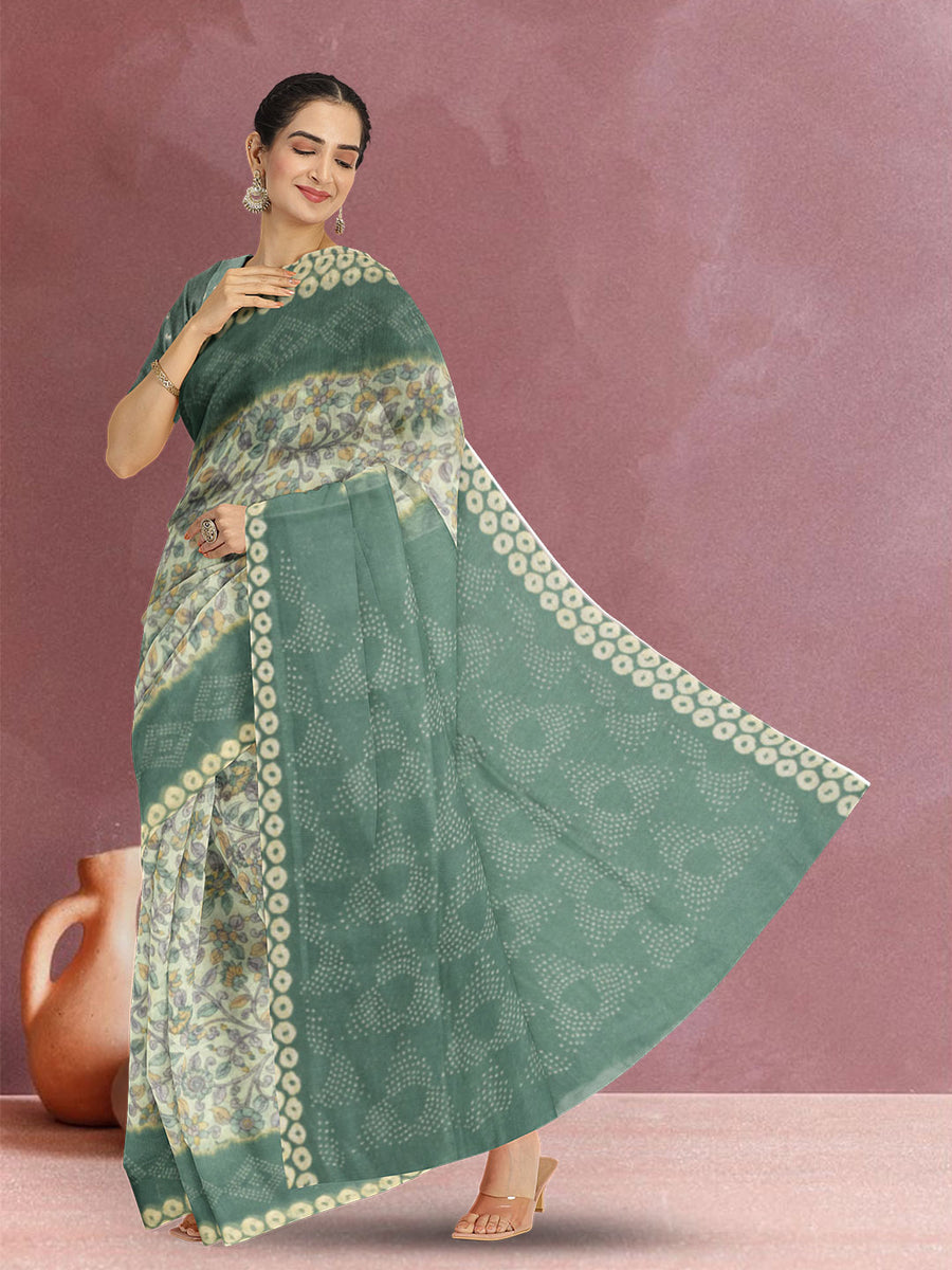 Pretty Hand Block and Digital Prints on Cool & Summery Linen Sarees. Enhanced with Zari Border