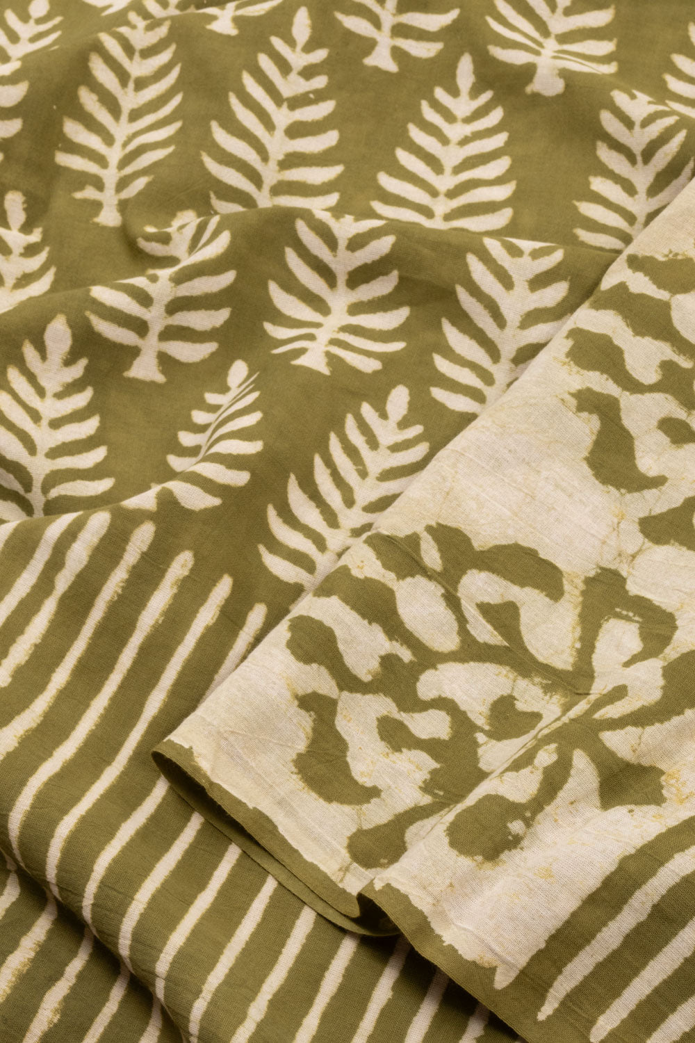 Dabu Printed Mulmul Cotton Saree with Floral Motifs 10039210