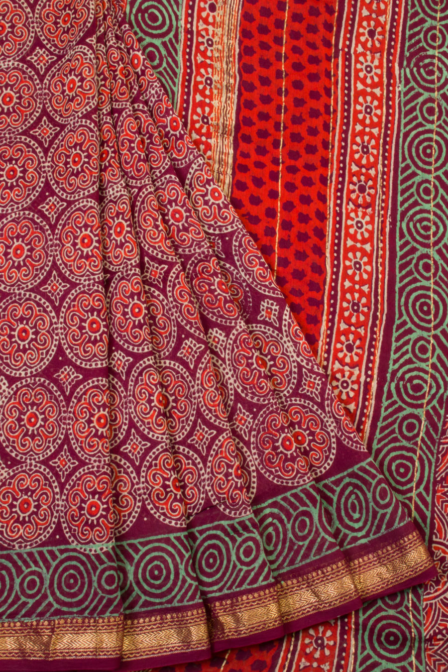Elevate your style with this Purple Sanganeri Printed Silk Cotton Saree featuring delicate floral motifs. The exquisite Sanganeri print showcases traditional craftsmanship, while the silk-cotton blend ensures a soft, breathable...