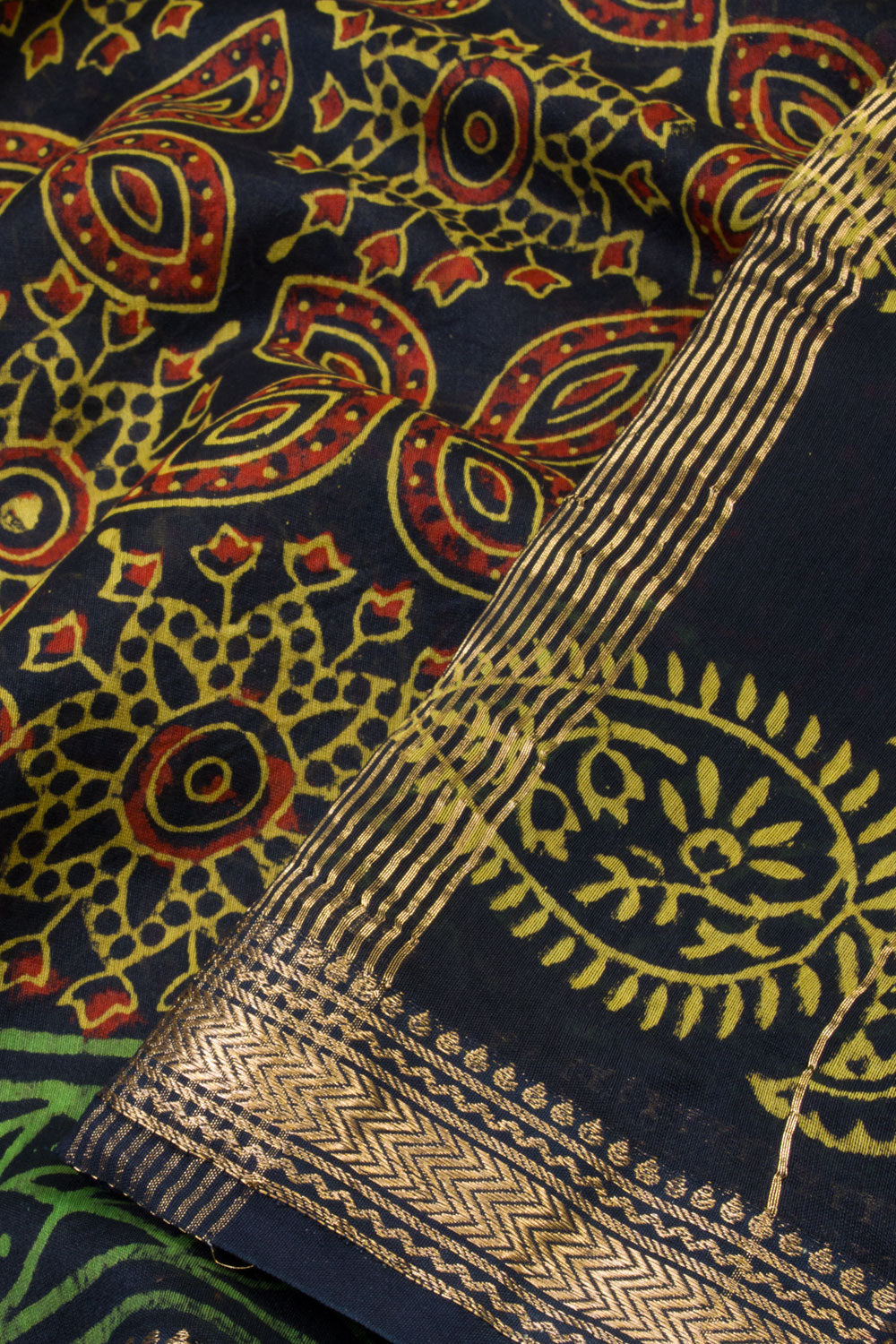 Elevate your style with this Green Sanganeri Printed Silk Cotton Saree featuring delicate floral motifs. The exquisite Sanganeri print showcases traditional craftsmanship, while the silk-cotton blend ensures a soft, breathable ...