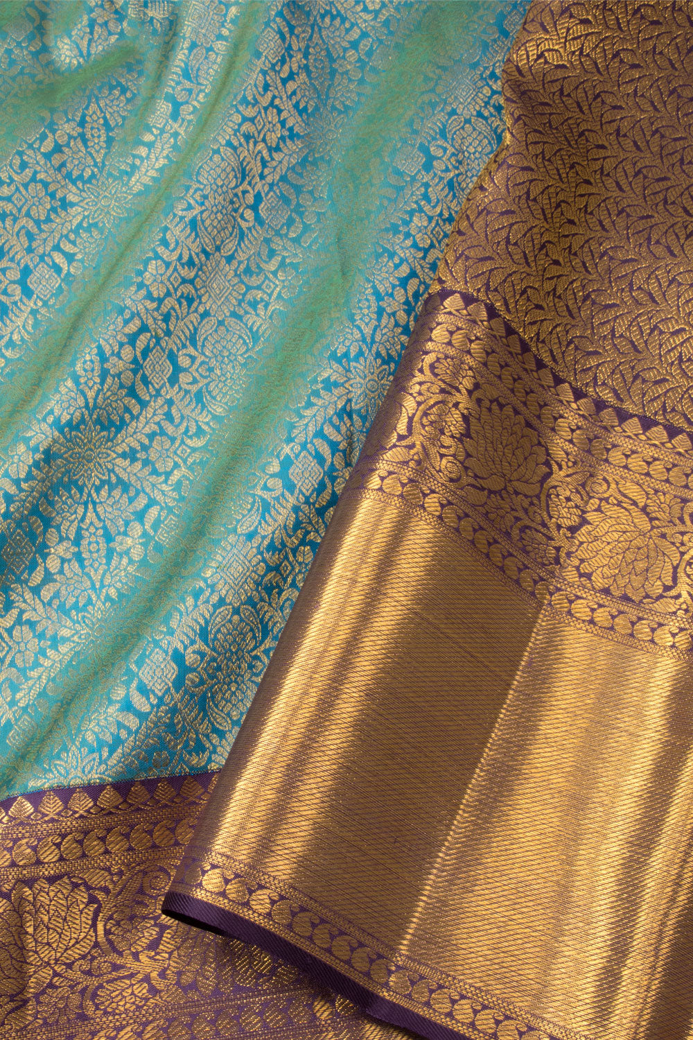 The Gem Blue Korvai Bridal Kanjivaram Pure Zari Silk Saree combines vibrant color with exquisite craftsmanship. Woven from pure zari silk using the traditional Korvai technique, this saree offers a rich texture and radiant fini...