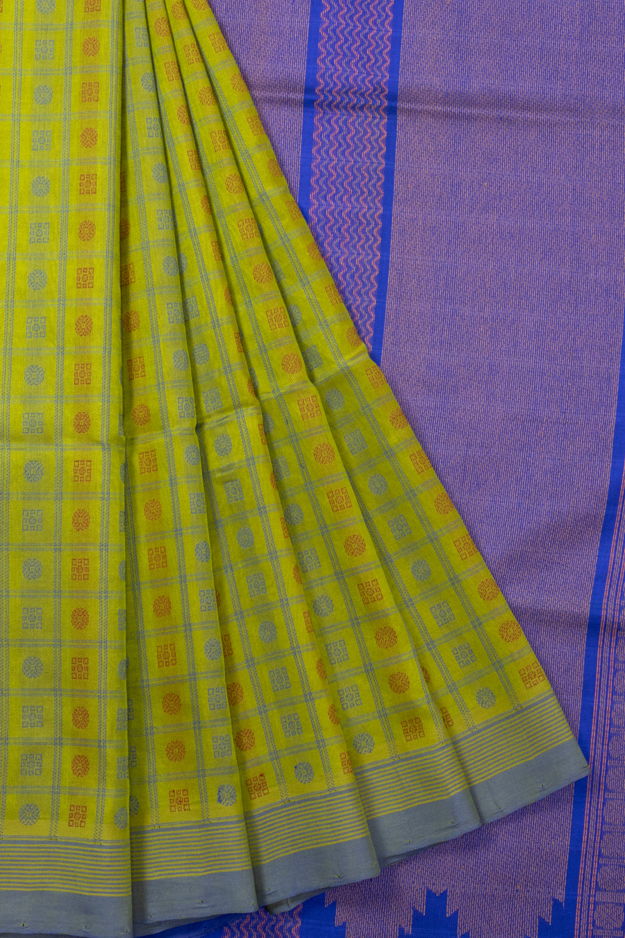 Dress in luxurious comfort and style with our Green Handloom Kanchi Silk Cotton Saree! Made of premium quality silk and cotton, this saree boasts a beautiful yellow hue and intricate handloom design. Elevate your look and embra...