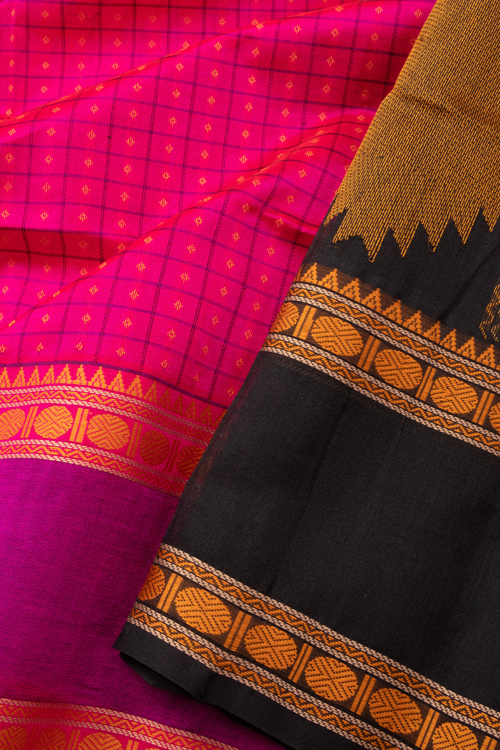 This gorgeous Yellow Handloom Kanchi Silk Cotton Saree is perfect for any occasion! Made with the finest quality silk and cotton, this saree provides both style and comfort. Its intricate handloom design and vibrant magenta col...