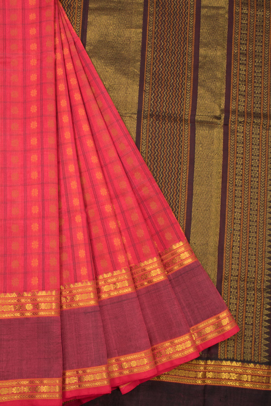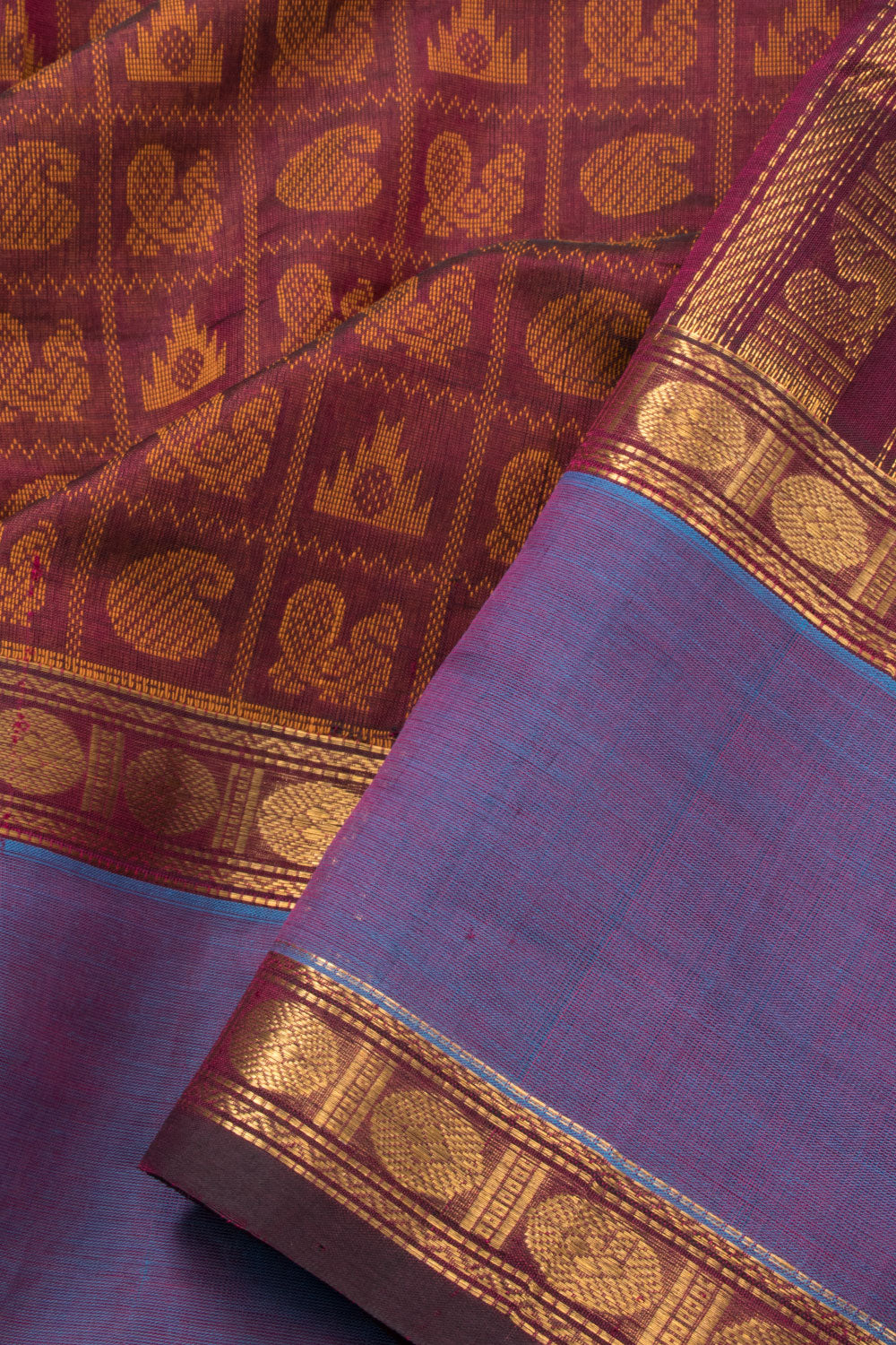 Handloom Kanchi Silk Cotton Saree with Veldhari Design, Salangai Motif Ganga Jamuna Border and Salangai Design Pallu 10061790