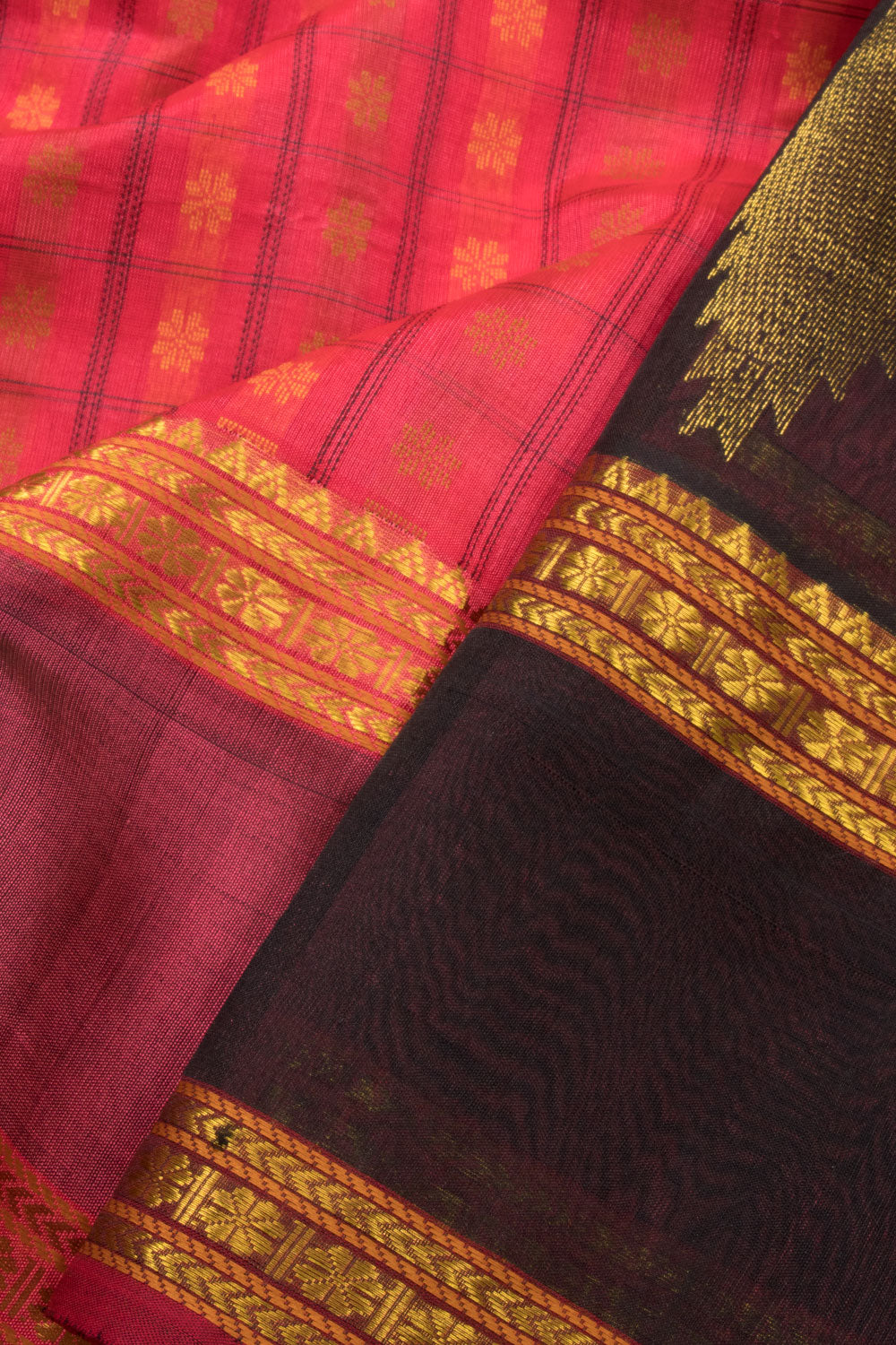 Black Handloom Kanchi Cotton Saree The perfect choice for a timeless look that will flatter any figure. Crafted from high-quality Kanchi cotton, you'll feel comfortable and stylish all day long.
