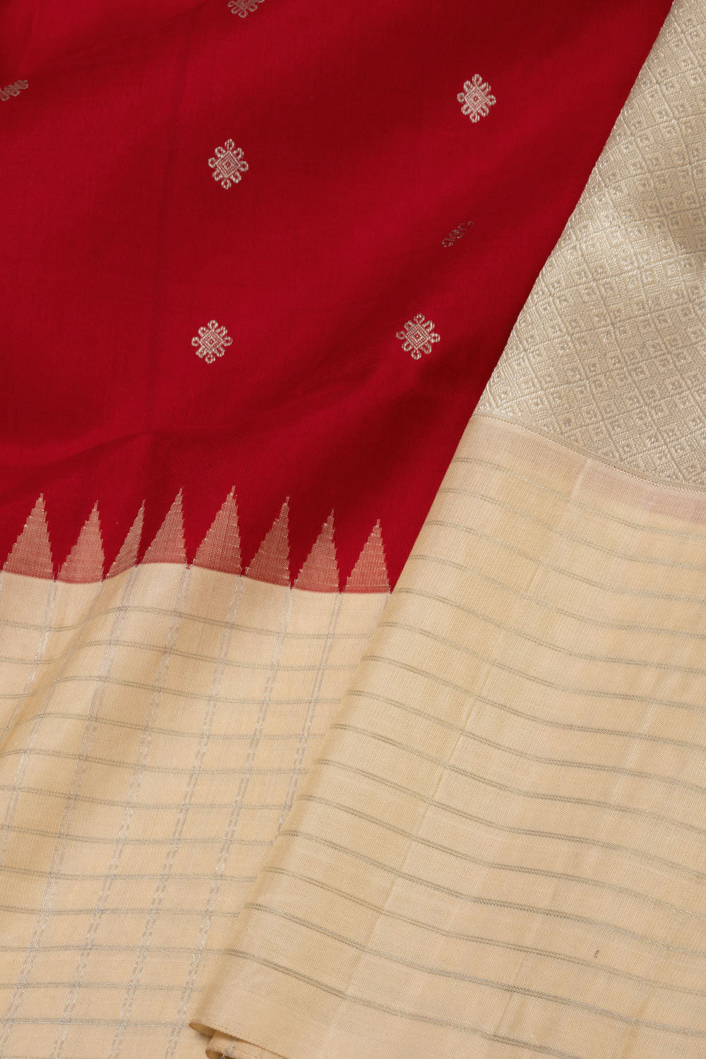 Handwoven Andhra Jamdani Khadi Cotton Saree with Interlock Silk Temple Border and Floral Pallu 10036134