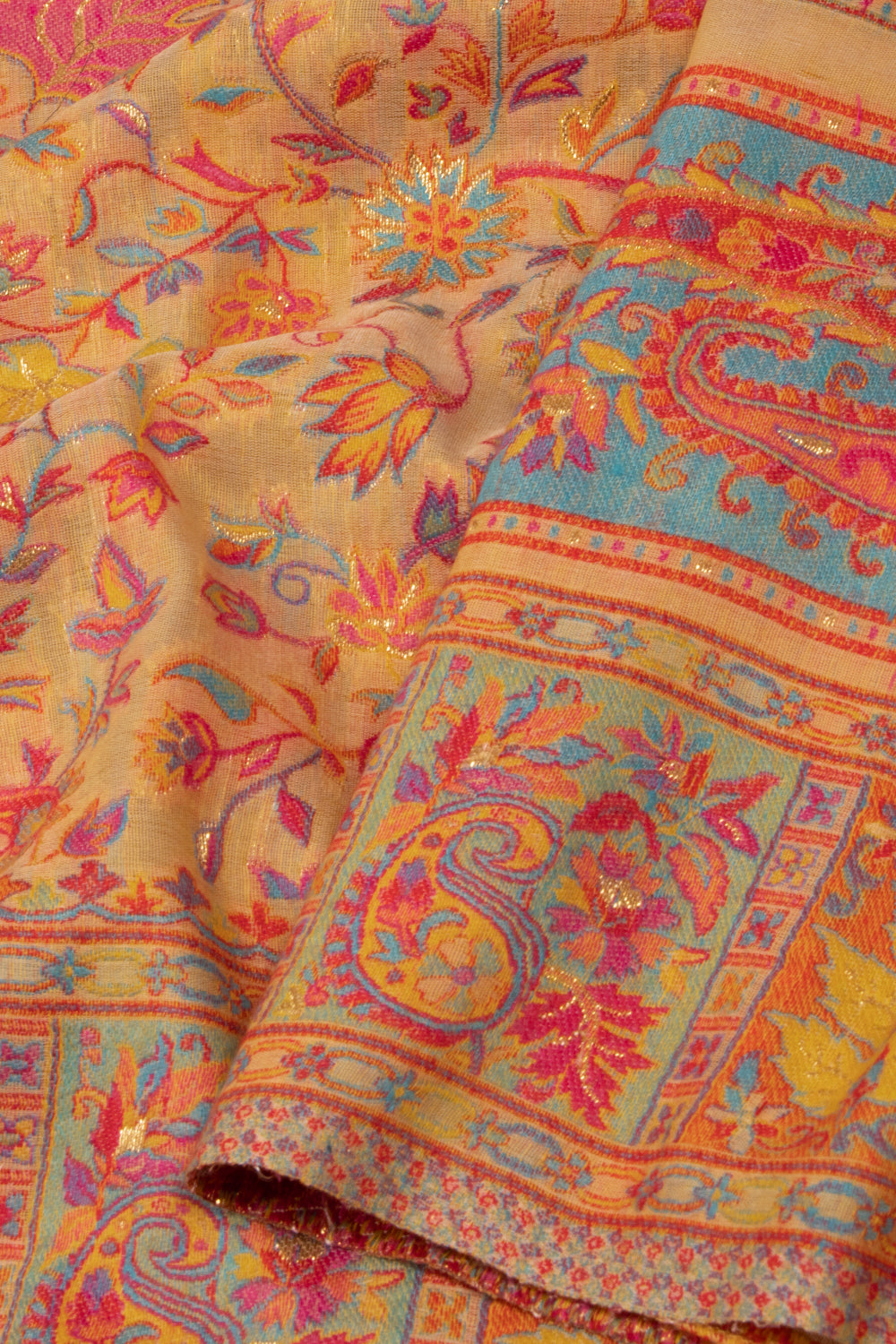 This Peach Handcrafted Banarasi Khaddi Georgette Saree features Paisley Motifs on the body, as well as a Floral Border and Brocade Floral Pallu. Crafted with silver zari weaves, the Pretty Pastel saree is ideal for special occa...