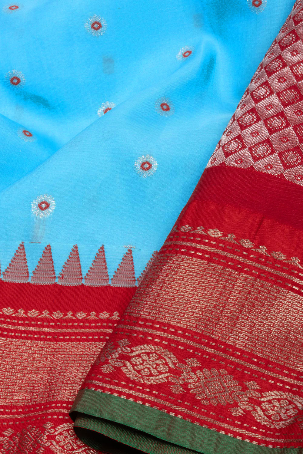 This Cool Blue Handcrafted Banarasi Khaddi Georgette Saree offers a sophisticated and exclusive look. The body features an elegant jaal design and the border and pallu are adorned with beautiful floral motifs. The exquisite han...