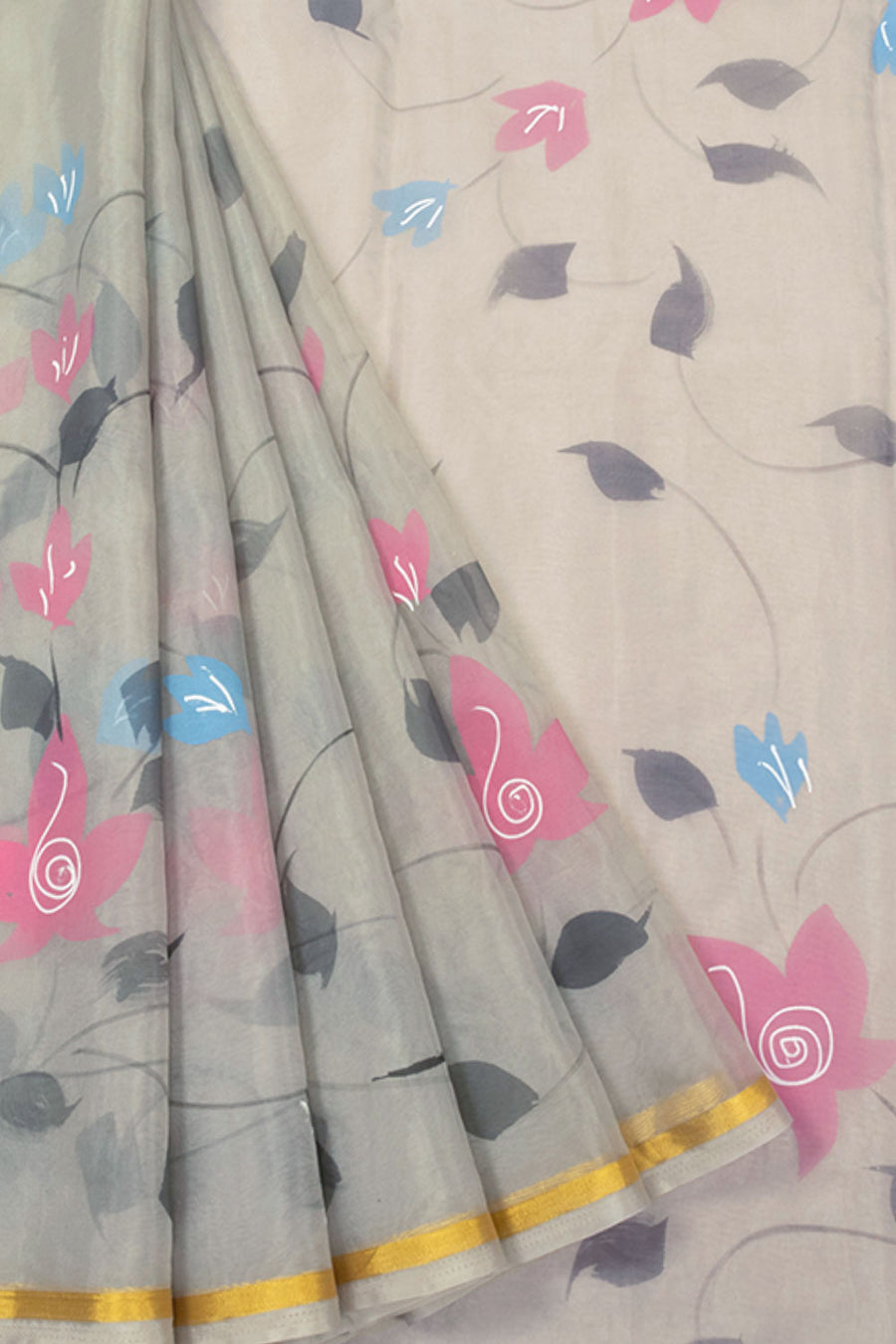 Hand Block Printed Natural Dye Maheshwari Silk Cotton Saree With Geecha Border 10040225