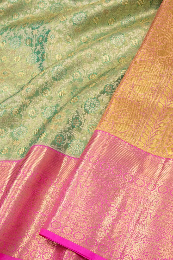 Green Kanjivaram Pure Silk Saree with Contrast Pallu 10074796