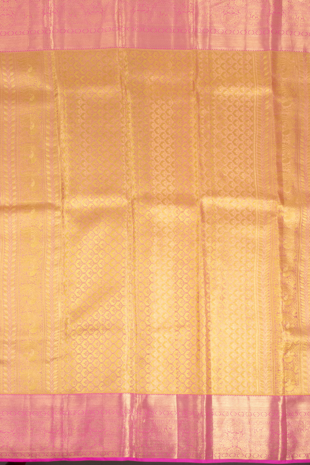Korvai Technique: The intricate art of interlocking contrast borders with the body, giving Kanjivaram sarees their distinctive look.