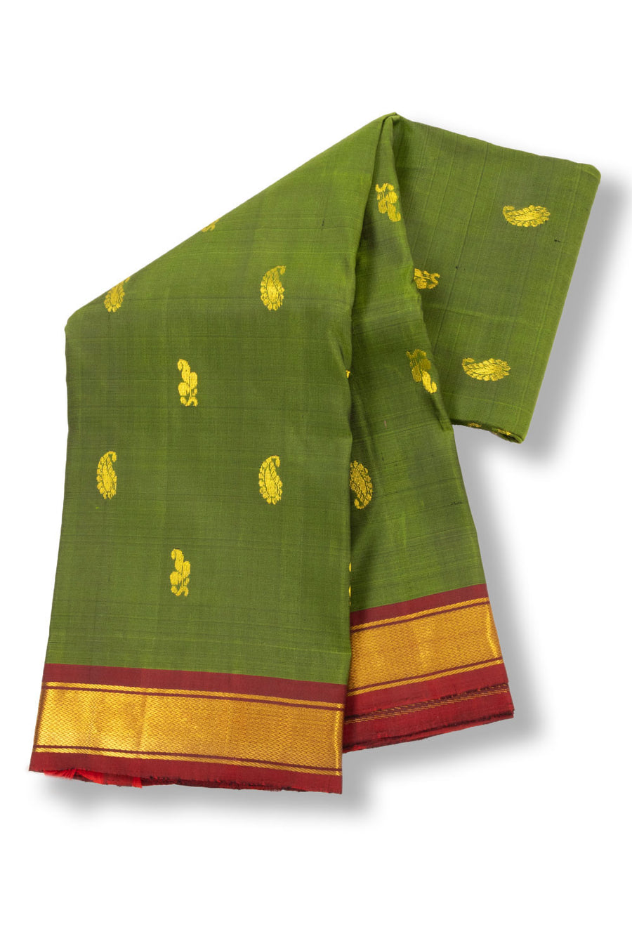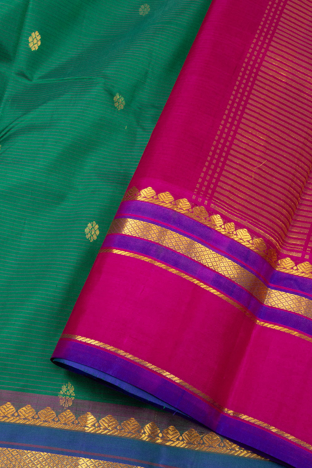 Discover the magic of this enchanting green handloom Kanjivaram soft silk saree that's bound to make you feel absolutely stunning! Meticulously handwoven by master artisans, this saree showcases the finest traditions of Kanjiva...