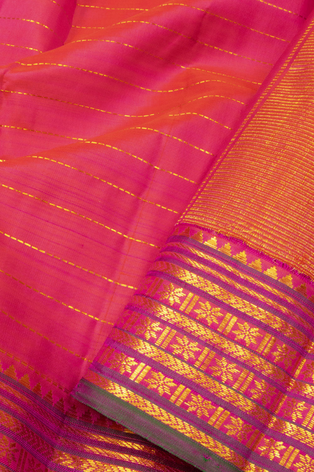 This gorgeous Dual Tone Pink Bridal Kanjivaram Silk Saree is perfect for your special day. Crafted from luxurious silk, this saree is sure to make you feel like royalty on your wedding day.