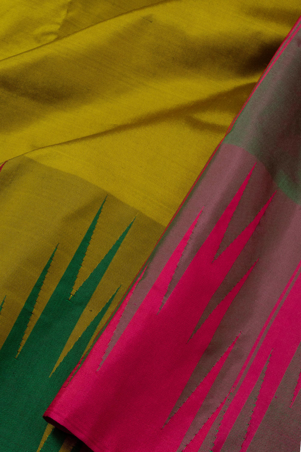Celebrate tradition with a splash of sunshine in this Yellow Kanjivaram Pure Silk Saree. Woven with exquisite pure zari, it brings a radiant shimmer to every twirl. Perfect for those who love luxury with a playful twist, this s...
